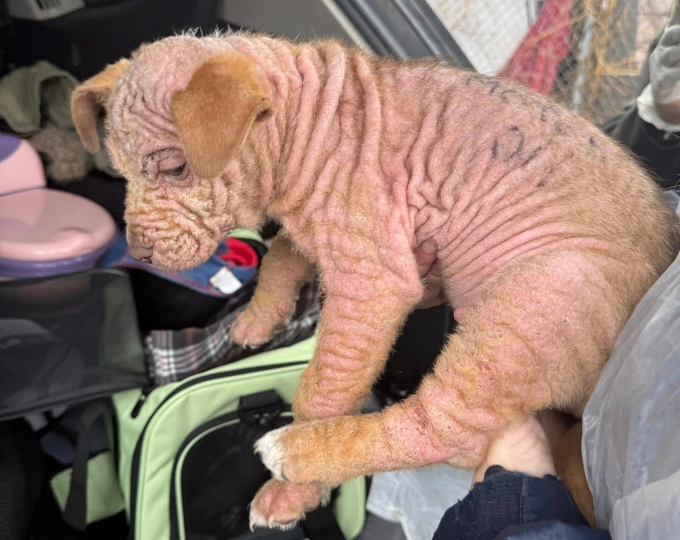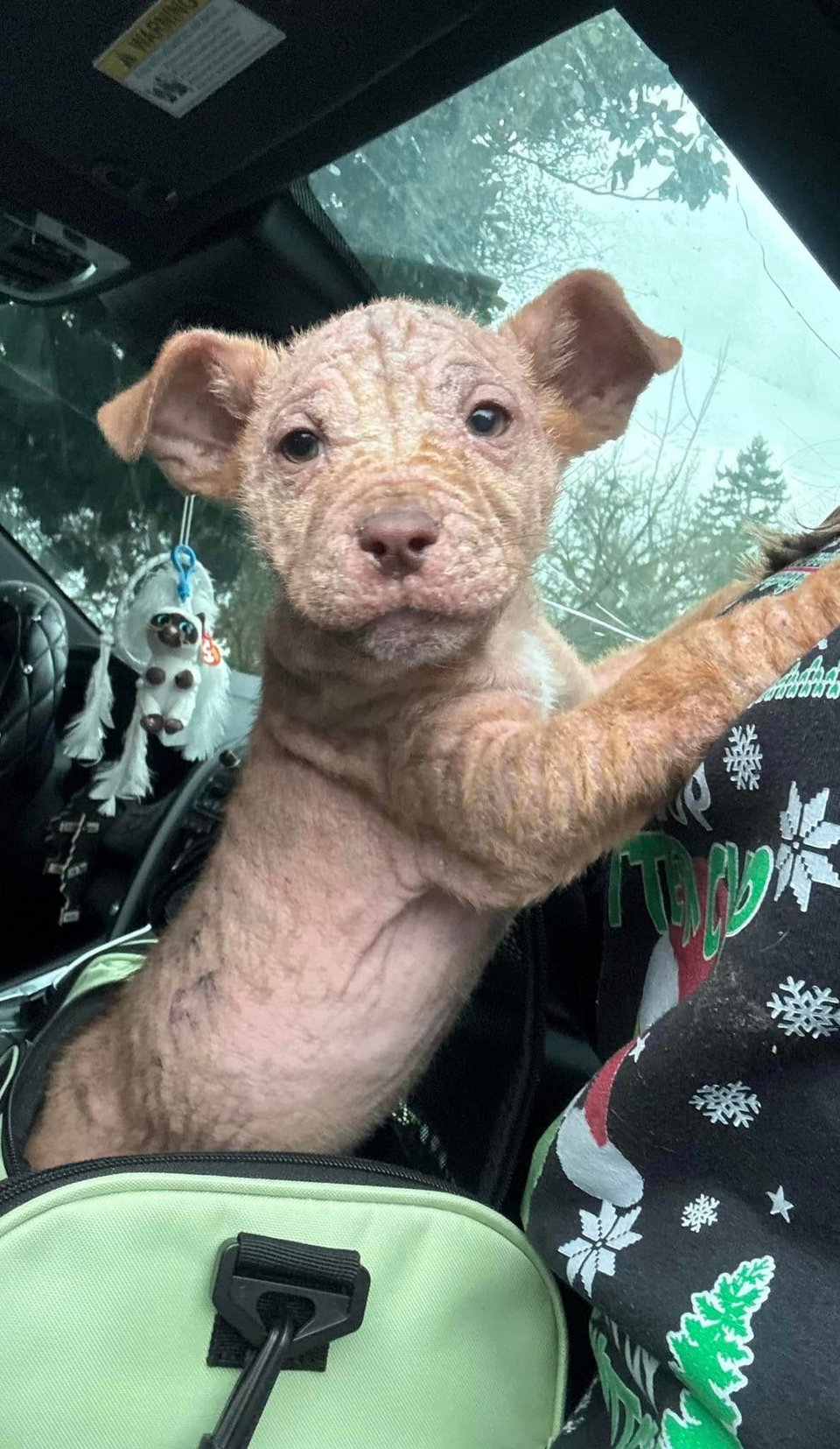 Μια νέα ζωή ξεκινά ένα άτριχο κουτάβι που ανακαλύφθηκε σε έναν καταυλισμό αστέγων στην Καλιφόρνια.