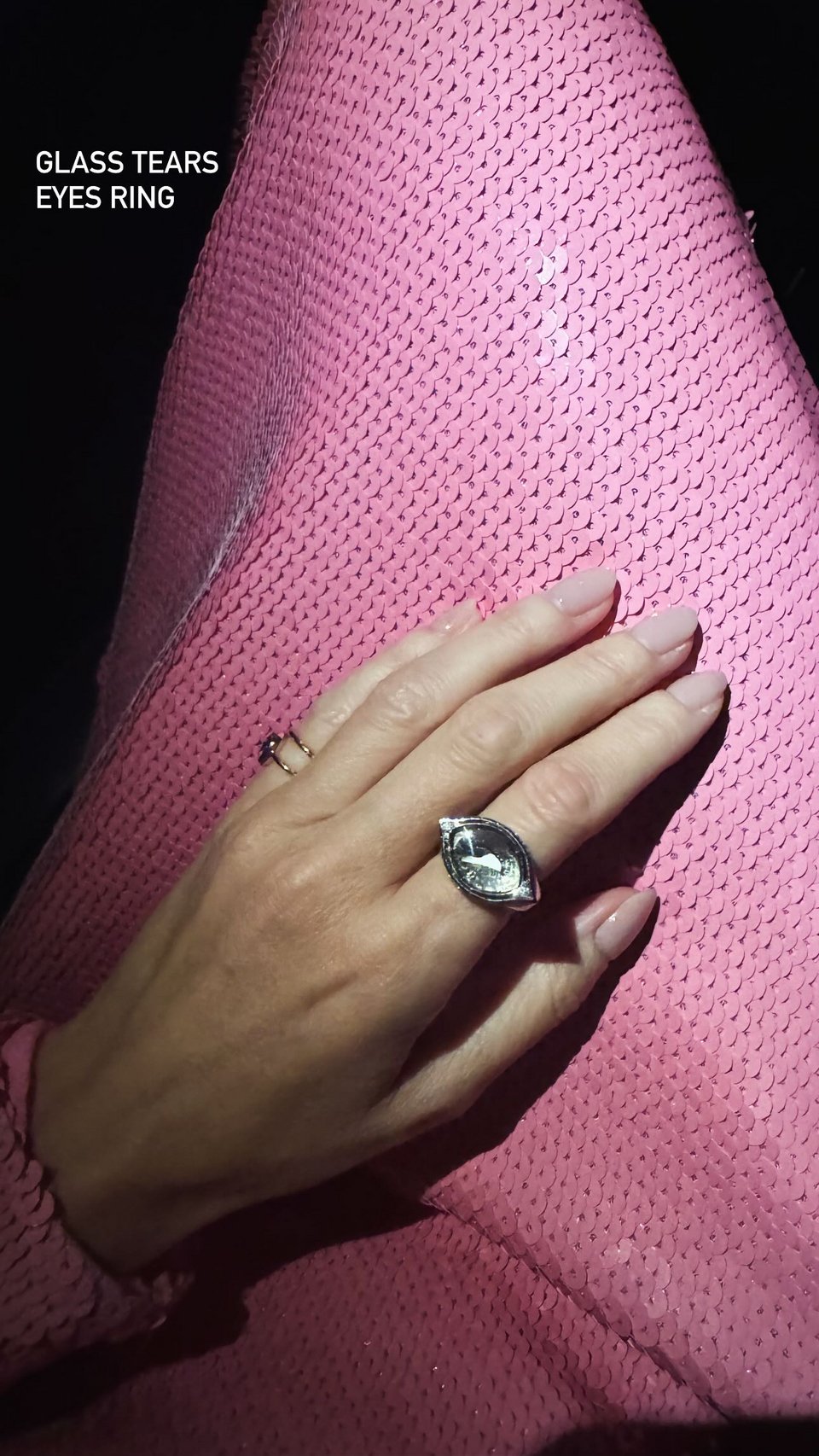 Η Ευγενία Νιάρχου επέλεξε ένα sparkly ροζ φόρεμα με μακριά μανίκια του οίκου Giambattista Valli και κοσμήματα της δικής της συλλογής.