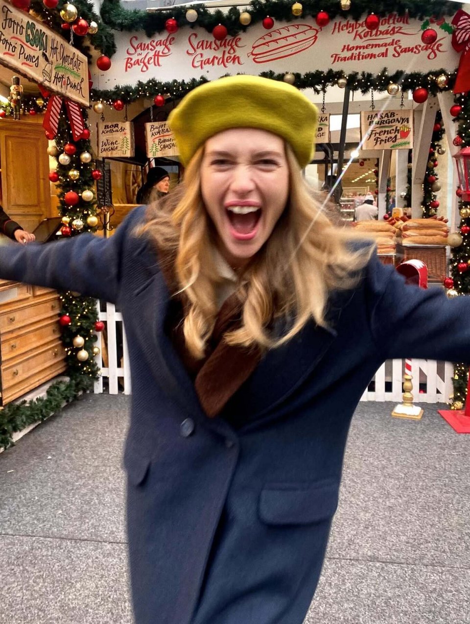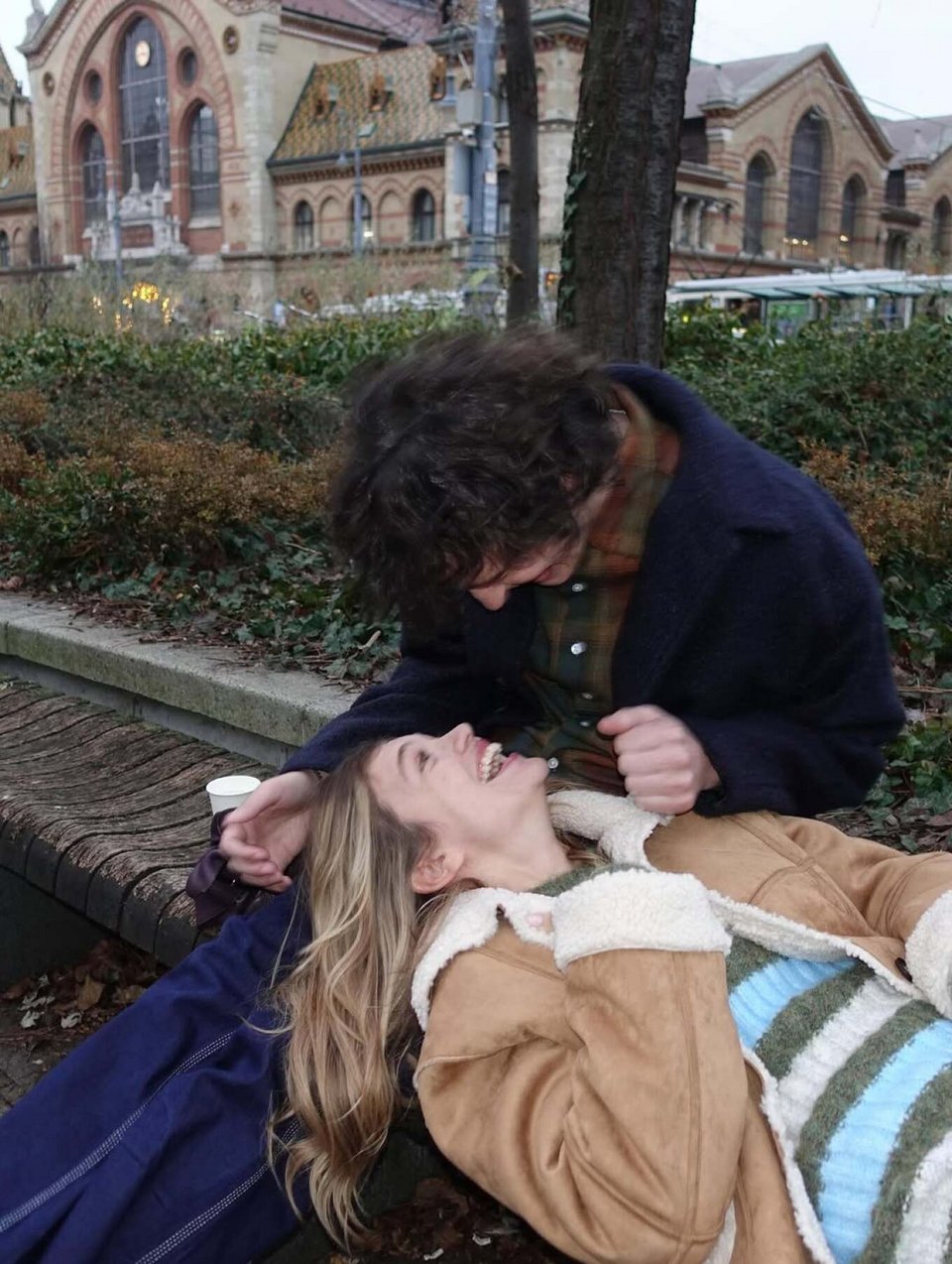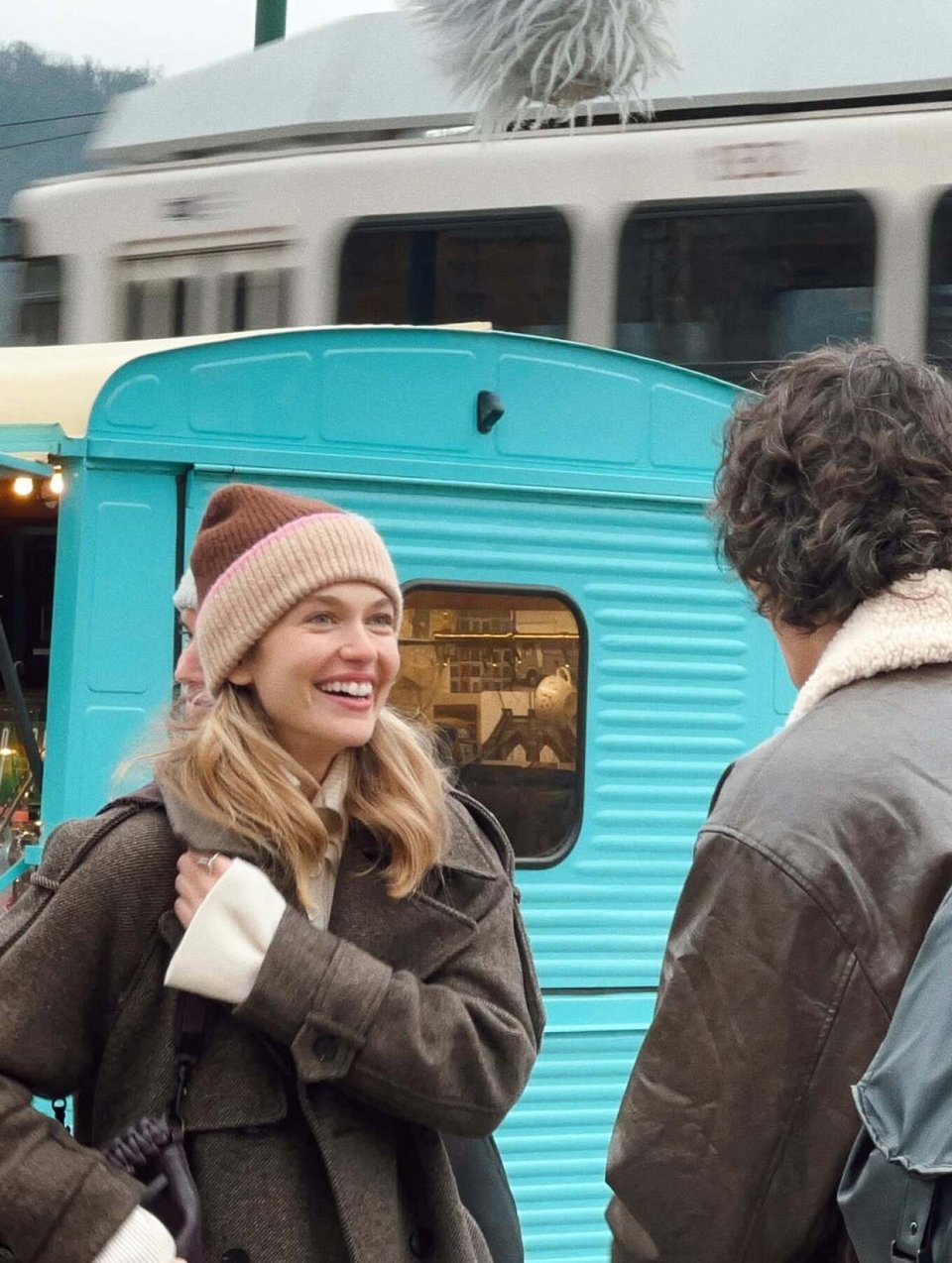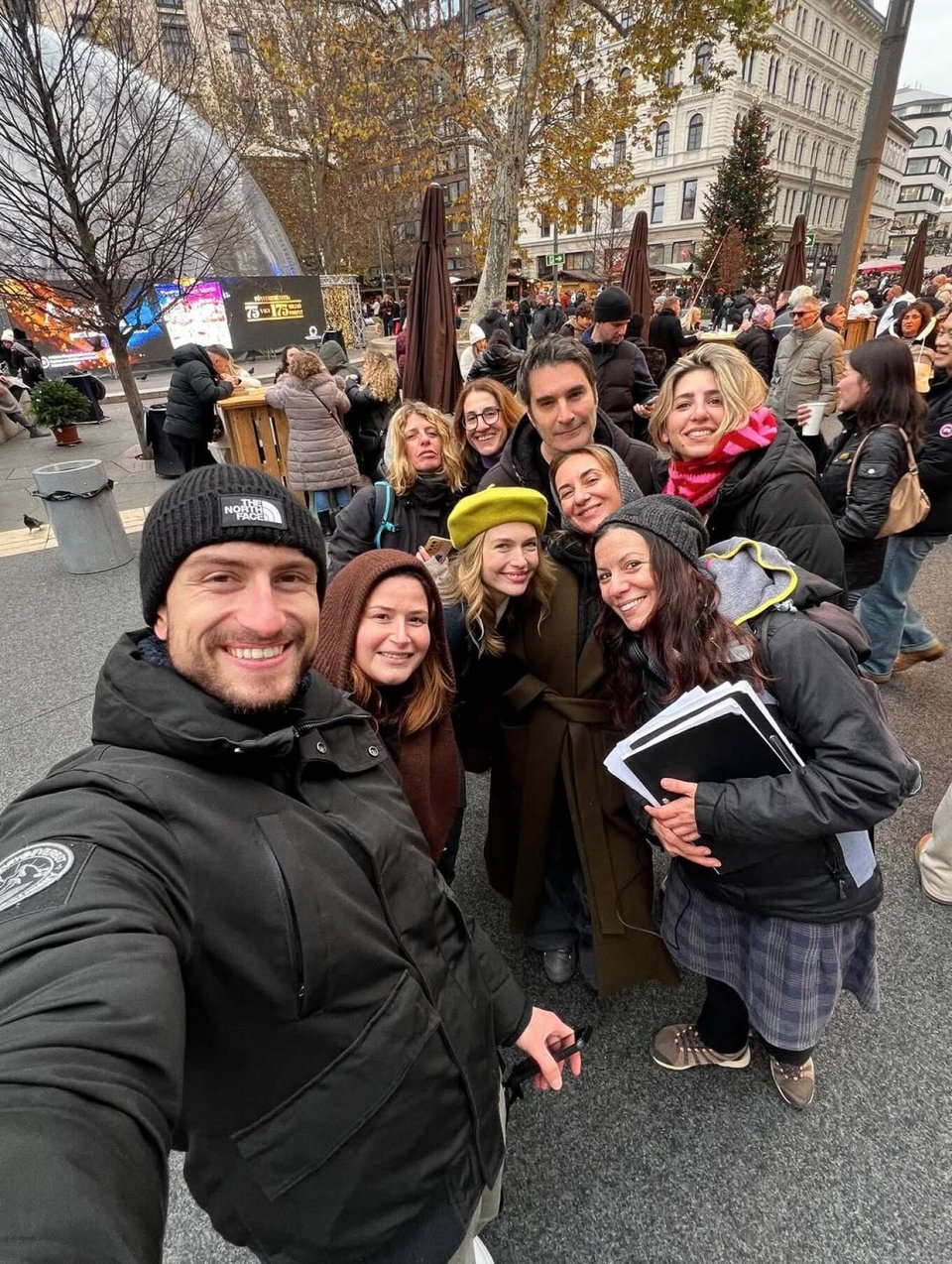 Στις εικόνες που δημοσίευσε, η ηθοποιός εμφανίζεται μαζί με τον πρωταγωνιστή και δημιουργό της σειράς σε χαρακτηριστικά σημεία της πόλης, όπως δρόμους του ιστορικού κέντρου και χριστουγεννιάτικες αγορές, ενώ σε ορισμένα στιγμιότυπα ποζάρουν πάνω σε ποδήλατο.