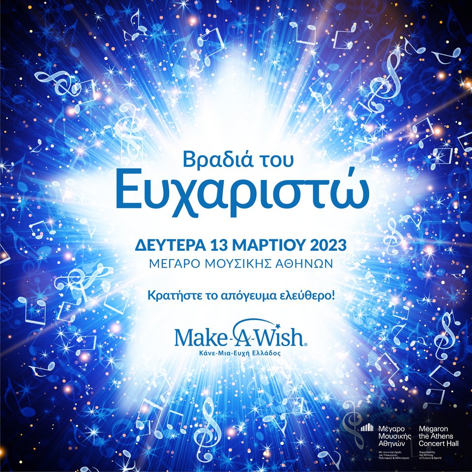 Φέτος, στην επερχόμενη Βραδιά του Ευχαριστώ, στις 13 Μαρτίου, στο Μέγαρο Μουσικής Αθηνών, στην αίθουσα ΤΡΙΑΝΤΗ, θα «συζητήσουμε» για την (ξ)Α-στεριά που ακολουθεί την παύση και το restart. Πλήθος γονέων και παιδιών θα μοιραστούν τις δικές τους ιστορίες και θα μας δώσουν μία «νότα»… ΑΣΤΕΡΩΝ! Κρατήστε το απόγευμά σας ελεύθερο και σύντομα θα μάθετε περισσότερα για το περιεχόμενο της εορταστικής και ενημερωτικής μας εκδήλωσης, που σκοπό έχει τόσο τη διάδοση του έργου μας, όσο και την απόλυτη έκφραση της ευγνωμοσύνης μας προς εθελοντές, χορηγούς, φίλους και υποστηρικτές, παιδιά και οικογένειες, γιατρούς και νοσηλευτικό προσωπικό.