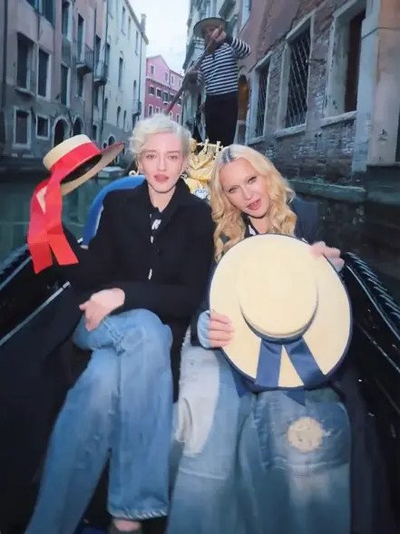 Η 67χρονη ποπ σταρ και η 32χρονη ηθοποιός έκαναν μαζί βόλτα με γόνδολα στα κανάλια της Βενετίας, τραγουδώντας σε playback την επιτυχία της Μαντόνα από το 1984 «Like A Virgin», σε μια σκηνή που αναπαριστούσε το βιντεοκλίπ του τραγουδιού.