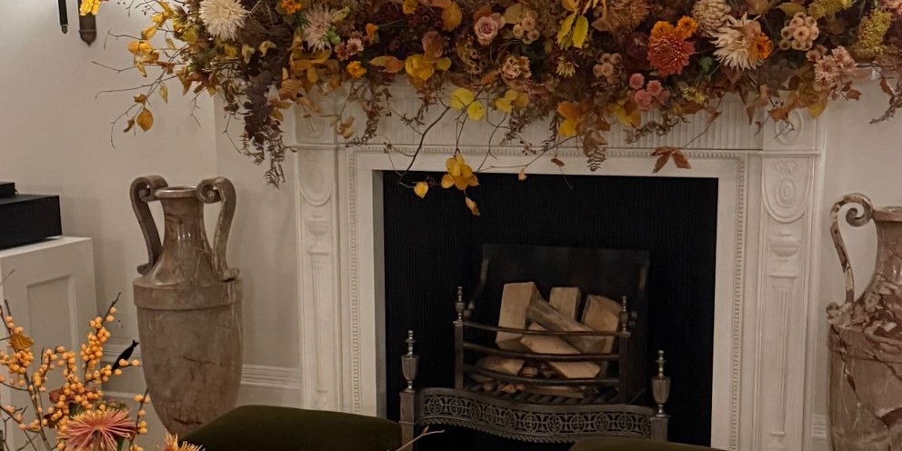 Κολοκύθες και λουλούδια παντού, στα χρώματα του φθινοπώρου, συνέθεταν τη θεματική διακόσμηση στο αρχοντικό σπίτι της οικογένειας στο Λονδίνο.