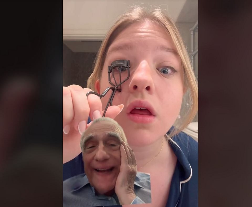 Στην αρχή του TikTok, η 24χρονη Φραντσέσκα ξεκινά με το foundation, με τον 81χρονο Μάρτιν Σκορσέζε να λέει πως «βάφει το πρόσωπό της» και στη συνέχεια, μετά από μια σκέψη να προσθέτει πως «μοιάζει με πρόσωπο κλόουν». Ακολούθως, προχωρά στο blending με τον σκηνοθέτη να σχολιάζει: «Πατινάρισμα, πολύ πατινάρισμα γίνεται» βλέποντας την κόρη του με το σφουγγαράκι.