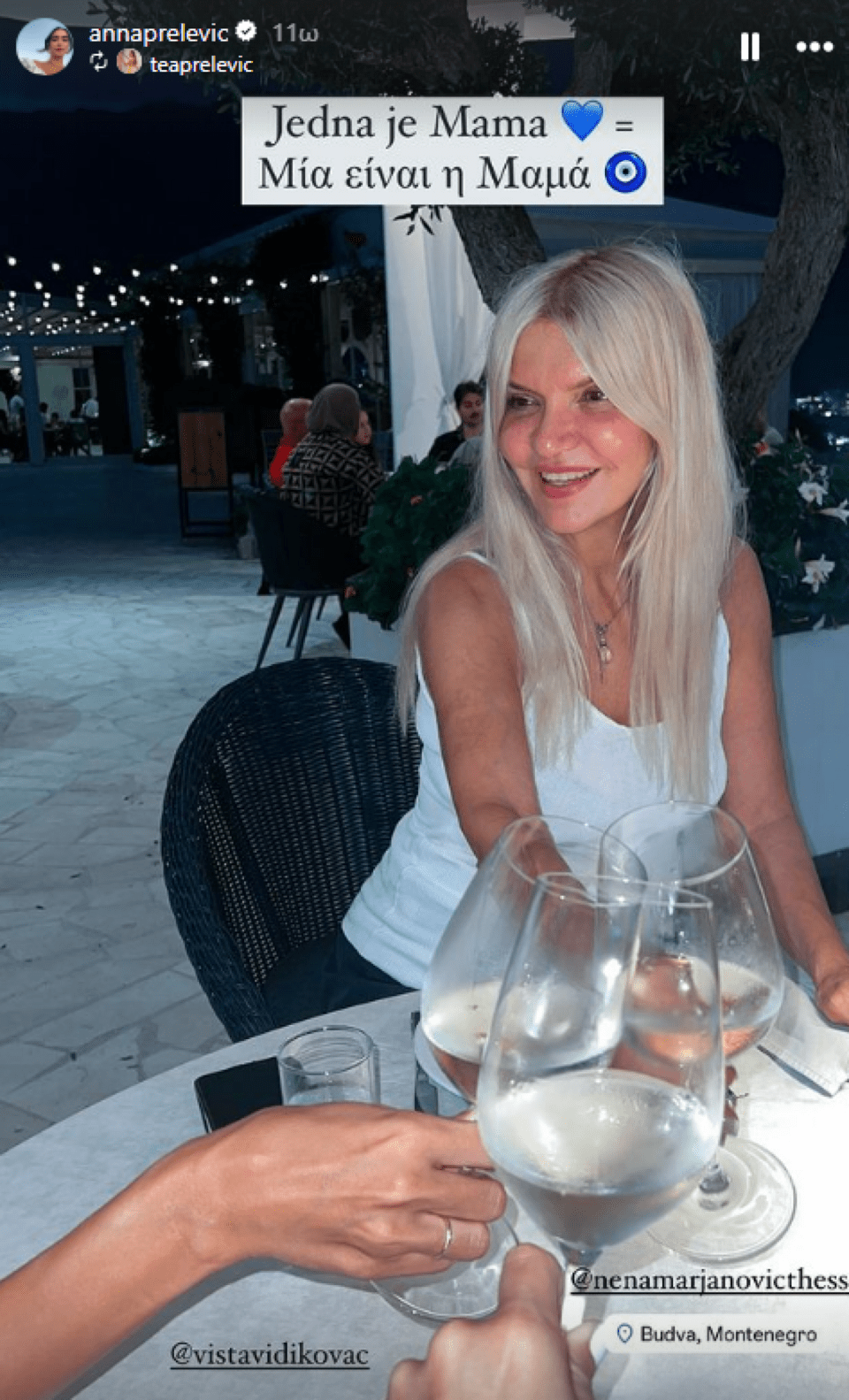 Στο βίντεο που ανάρτησαν από κοινού, οι Άννα και Τέα Πρέλεβιτς χορεύουν και στη λεζάντα έγραψαν: «Τελευταία στάση: στη μανούλα! Ήρθαμε Μαυροβούνιο να δούμε τη μαμά και ετοιμαζόμαστε δυναμικά για τη νέα σεζόν».