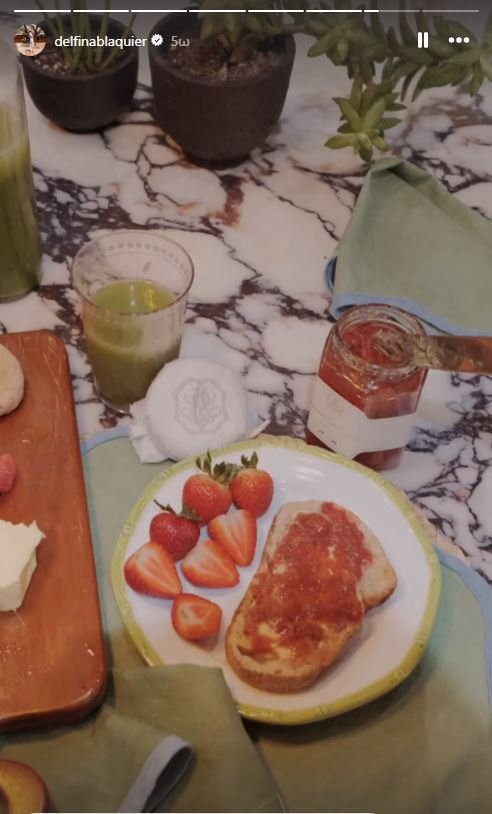 Η Μπαλκιέρ δημοσίευσε επίσης μια παρόμοια εικόνα στα stories της, γράφοντας: «Η μαρμελάδα φράουλα με κάνει ευτυχισμένη. Και αγαπώ τη μαρμελάδα σας, @AmericanRivieraOrchard». Η ετικέτα της έγραφε: «10 από 50». Η ανάρτηση έδειχνε επίσης λίγη από τη μαρμελάδα αλειμμένη σε μια φέτα ψωμί.