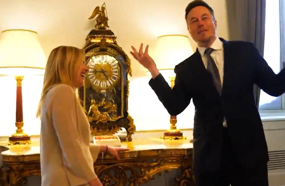 Ένα βίντεο από τη συνάντηση μεταξύ του CEO της Tesla και της Ιταλίδας πρωθυπουργού δείχνει την εγκάρδια σχέση τους. Τόσο εγκάρδια μάλιστα, που η Τζόρτζια Μελόνι έδειχνε συνεπαρμένη από τον Έλον Μασκ και δεν έπαιρνε το βλέμμα της από πάνω του.