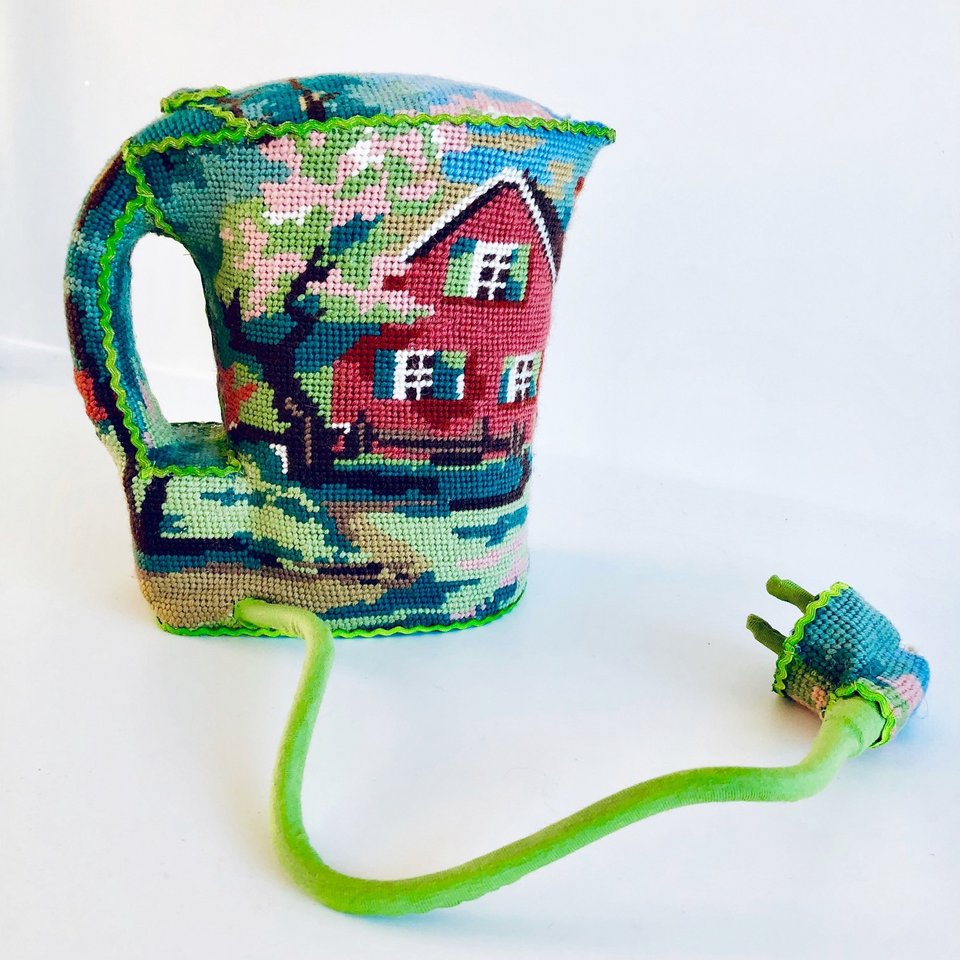 Η Wikander διαλέγει παλιά τηλέφωνα με καντράν, συσκευές που απαντώνται στην κουζίνα (καφετιέρα, βραστήρας και άλλα), σίδερα σιδερώματος, ηλεκτρικές σκούπες και τα τυλίγει με κέντημα με σταυροβελονιά, ντύνοντάς τα με βουκολικά τοπία ή σκηνές της ζωής στο σπίτι.