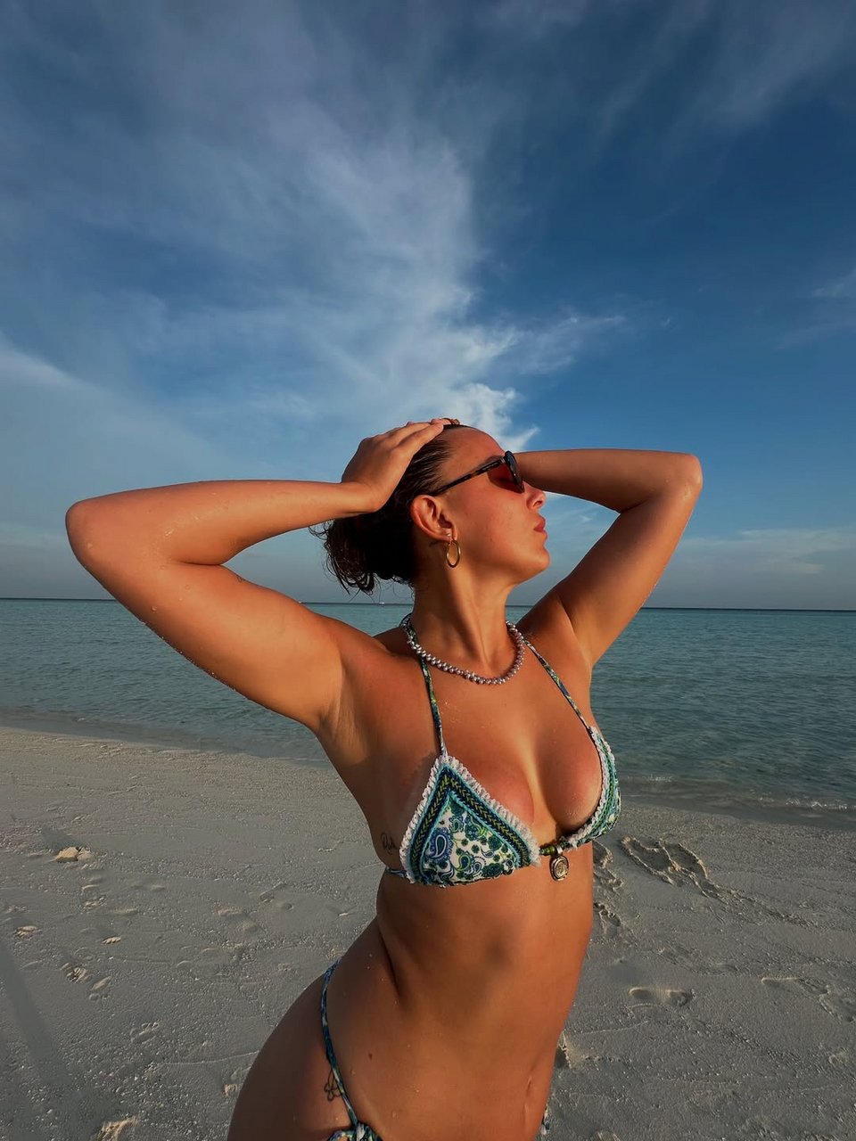 Η 21χρονη Βρετανίδα ηθοποιός, γνωστή για τον ρόλο της στη σειρά Stranger Things, πόζαρε φορώντας ένα πολύχρωμο μπικίνι σε αποχρώσεις του μπλε και του πράσινου, συνδυασμένο με κομψά γυαλιά ηλίου και ένα διακριτικό κολιέ.