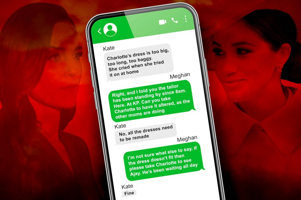 «Το φόρεμα της Σάρλοτ είναι πολύ μεγάλο, πολύ μακρύ, πολύ φαρδύ. Έκλαψε όταν το δοκίμασε στο σπίτι» φέρεται να έγραψε σε μήνυμα η δούκισσα του Κέιμπριτζ στη μέλλουσα συνυφάδα της.