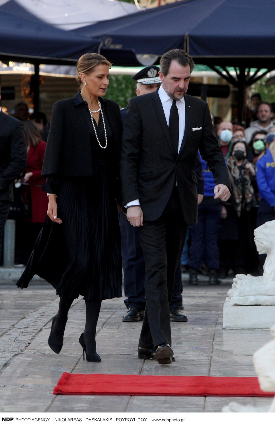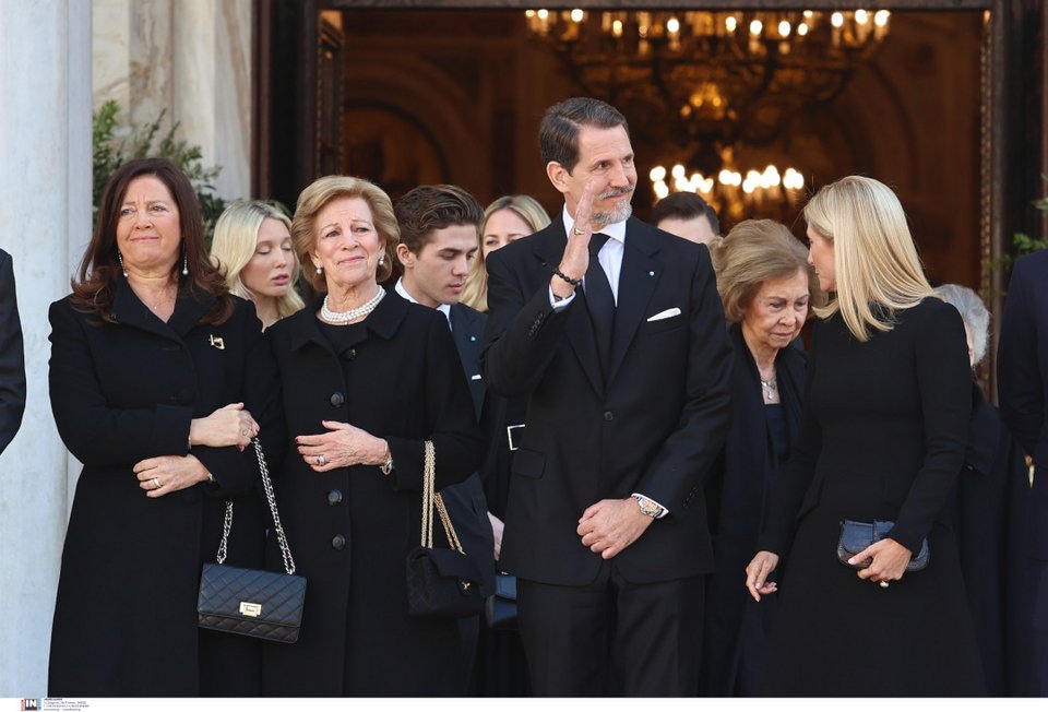 Μετά την ολοκλήρωση του μνημόσυνου η οικογένεια του τέως βασιλιά Κωνσταντίνου στάθηκε στα σκαλιά της Μητρόπολης και χαιρέτισε τον κόσμο.