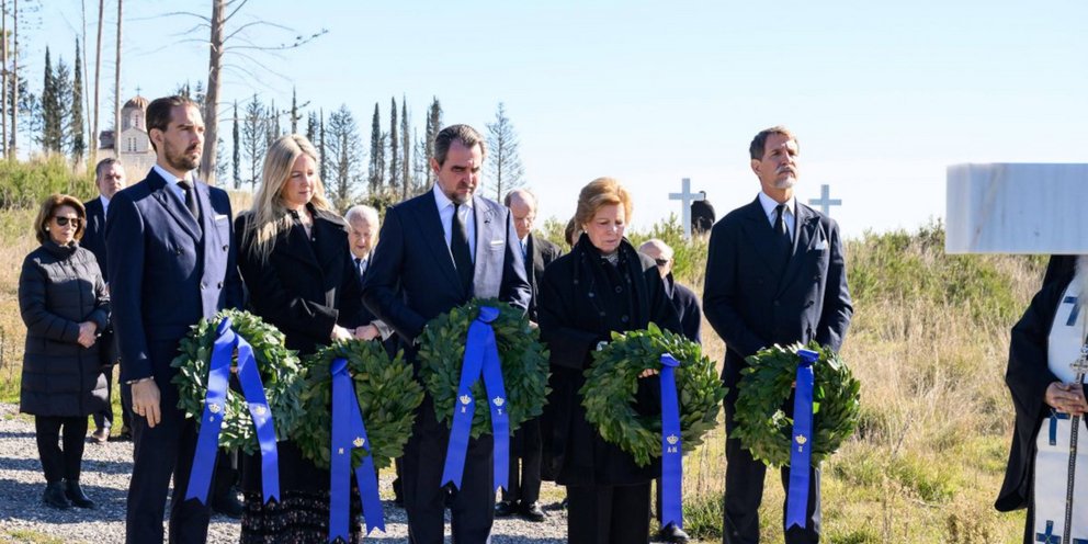 Η οικογένεια Ντε Γκρες, μετά το μνημόσυνο, μοιράστηκε φωτογραφίες με τα πέντε μέλη της να καταθέτουν στεφάνι στον τάφο του Κωνσταντίνου και στη συνέχεια ένας-ένας να αποτίει φόρο τιμής.