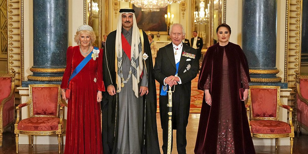 Ο βασιλιάς Κάρολος και η βασίλισσα Καμίλα, η οποία ανάρρωσε από πνευμονία, παρέθεσαν την Τρίτη μια επίσημη δεξίωση στον εμίρη του Κατάρ, σεΐχη Ταμίμ μπιν Χαμάτ Αλ Θάνι και την πρώτη από τις τρεις συζύγους του, σεΐχα Τζαουάχερ, που βρίσκονται στην Αγγλία για διήμερη κρατική επίσκεψη.