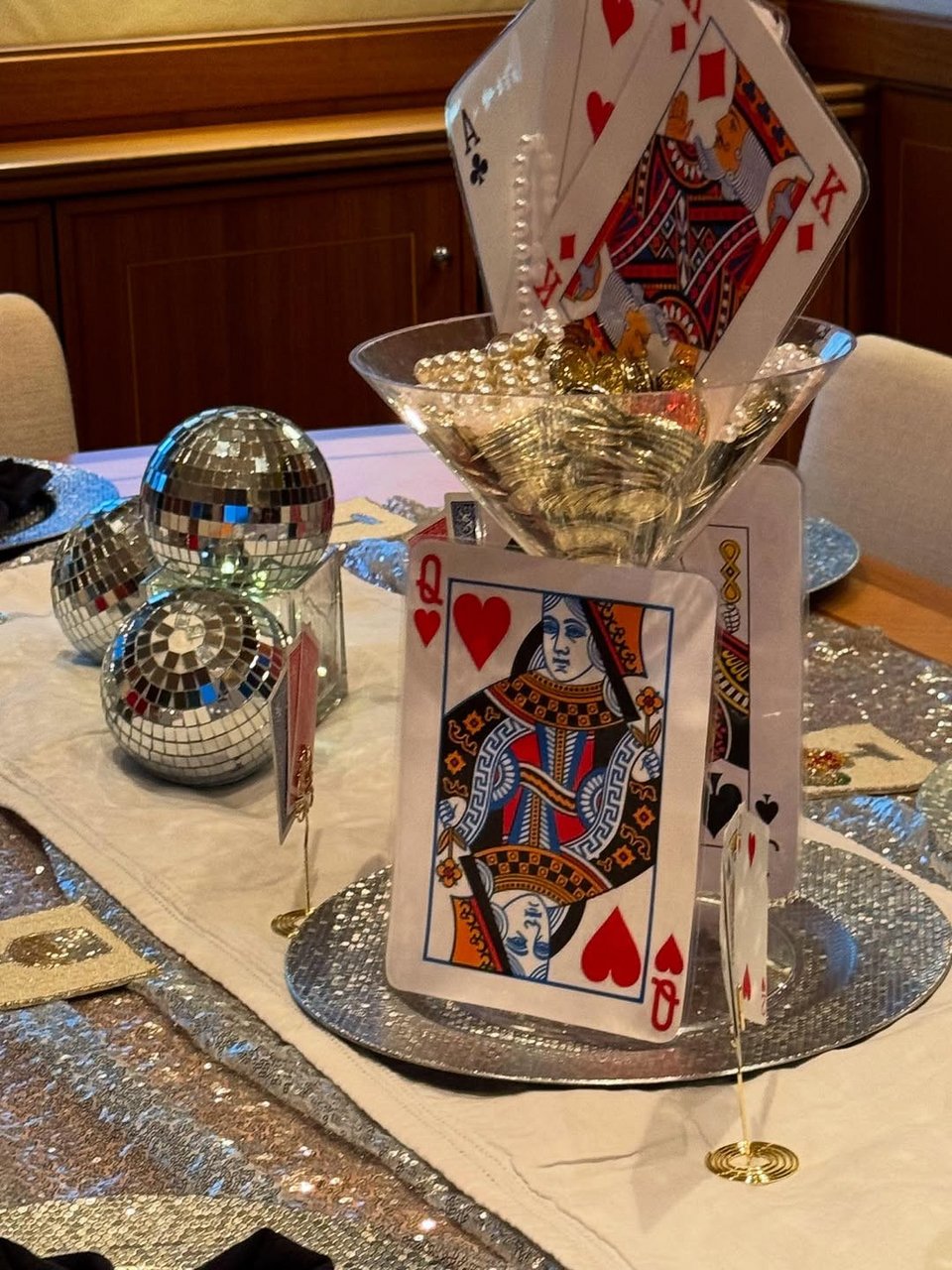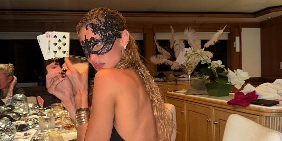 Σε άλλες φωτογραφίες, η Μπέλα Χαντίντ πόζαρε μαζί με μία φίλη της, με τις δύο γυναίκες να φαίνεται πως βρίσκονταν σε δείπνο, καθώς στο τραπέζι διακρίνονταν τραπουλόχαρτα και μικρές ντισκομπάλες.