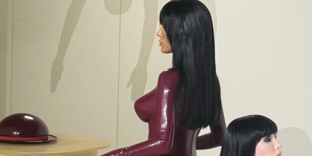 Η πρώην αρχιτέκτονας φορούσε μια εφαρμοστή, μπορντό ολόσωμη φόρμα από λάτεξ, που έμοιαζε σαν να ήταν κυριολεκτικά «ραμμένη» επάνω της.