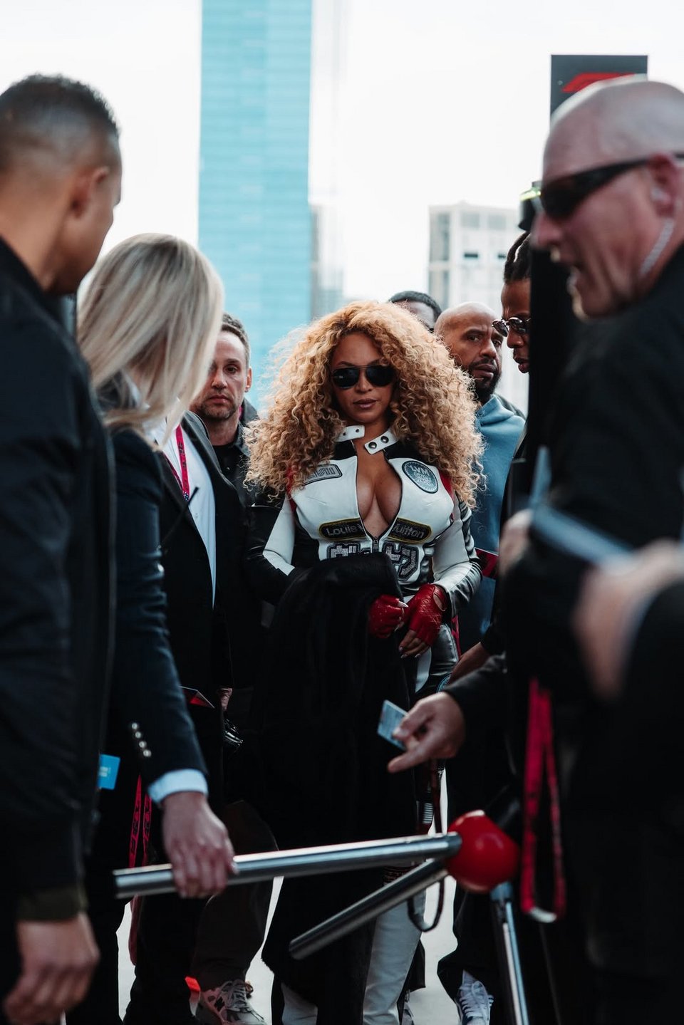 Η μεγάλη έκπληξη, τουλάχιστον για τους θεατές, ήταν η στιγμή που ο διάσημος οδηγός αγώνων Lewis Hamilton, έκανε έναν «hot lap» την Μπιγιονσέ και το Jay Z με ένα κατακόκκινο σπορ αυτοκίνητο.