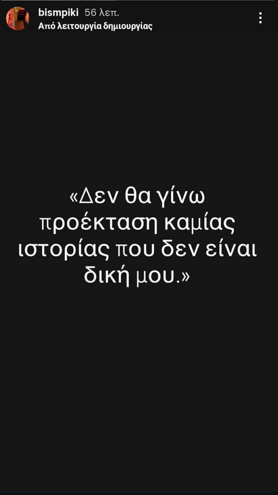 Αποστάσεις από την υπόθεση του Βασίλη Μπισμπίκη παίρνει η αδελφή του, Παναγιώτα, μέσω story στο Instagram.