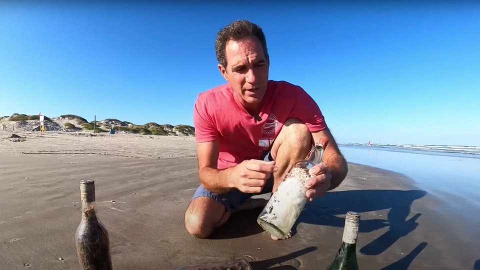 Ο ερευνητής Jace Tunnell βρήκε τα άγνωστης προέλευσης μπουκάλια σε μια παραλία κοντά στο Corpus Christi του Τέξας, στις 15 Νοεμβρίου.