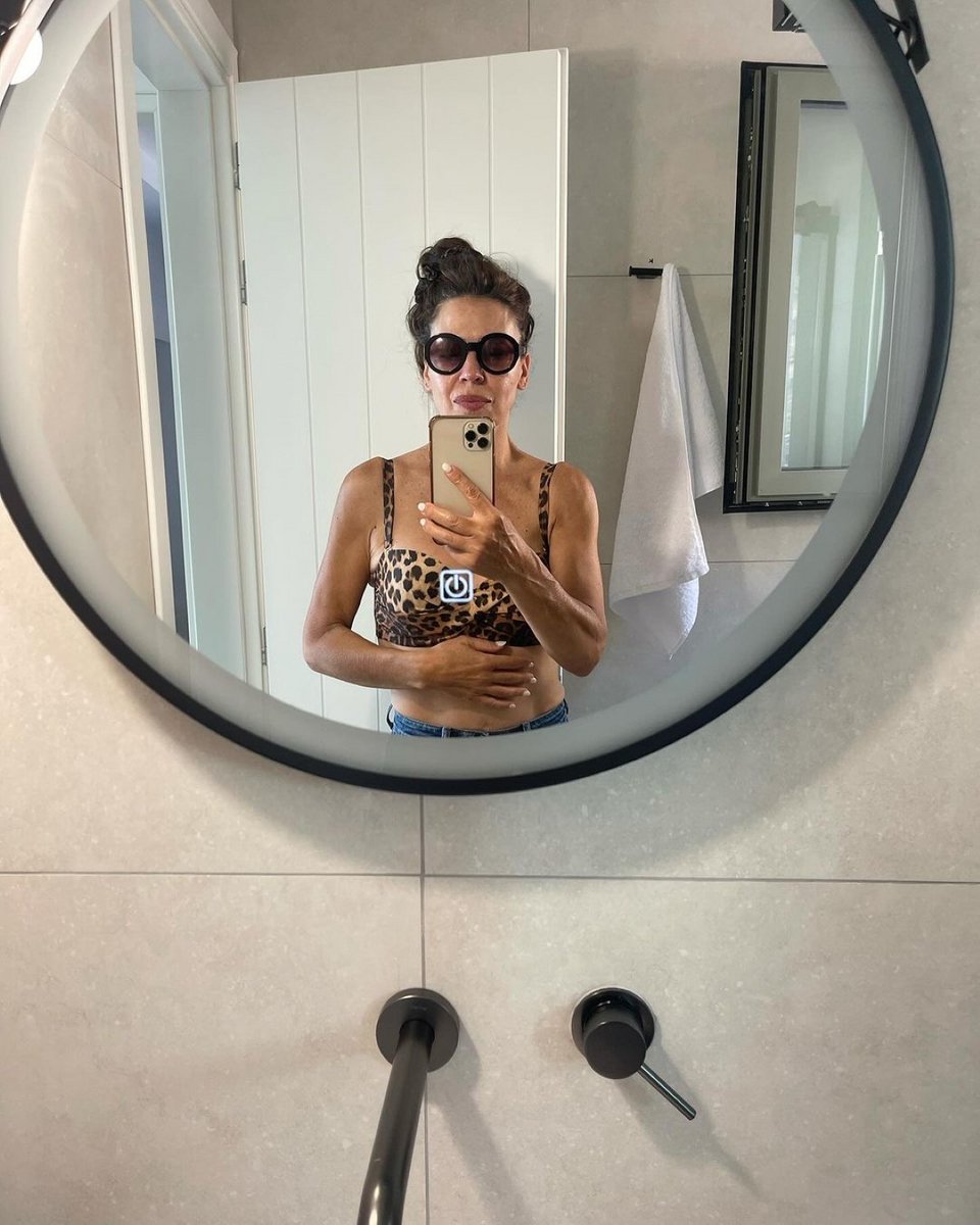 Σε άλλα καρέ, η Ναταλία Δραγούμη βγάζει μερικές selfie, ενώ ποζάρει μπροστά στον καθρέφτη.