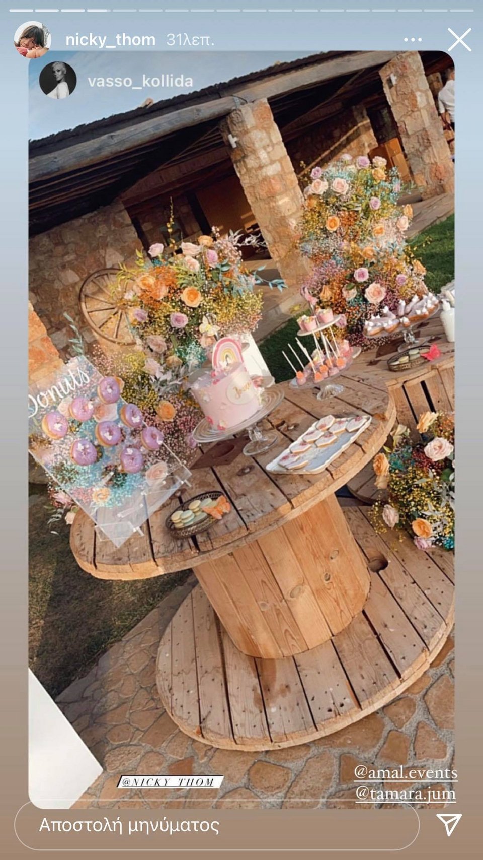 Οπως μπορείτε να δείτε στις φωτογραφίες που κατέκλυσαν τα social media το σκηνικό ήταν παραμυθένιο με έμπνευση από τους γάμους και βαφτίσεις που τελούνται στην Τοσκάνη.