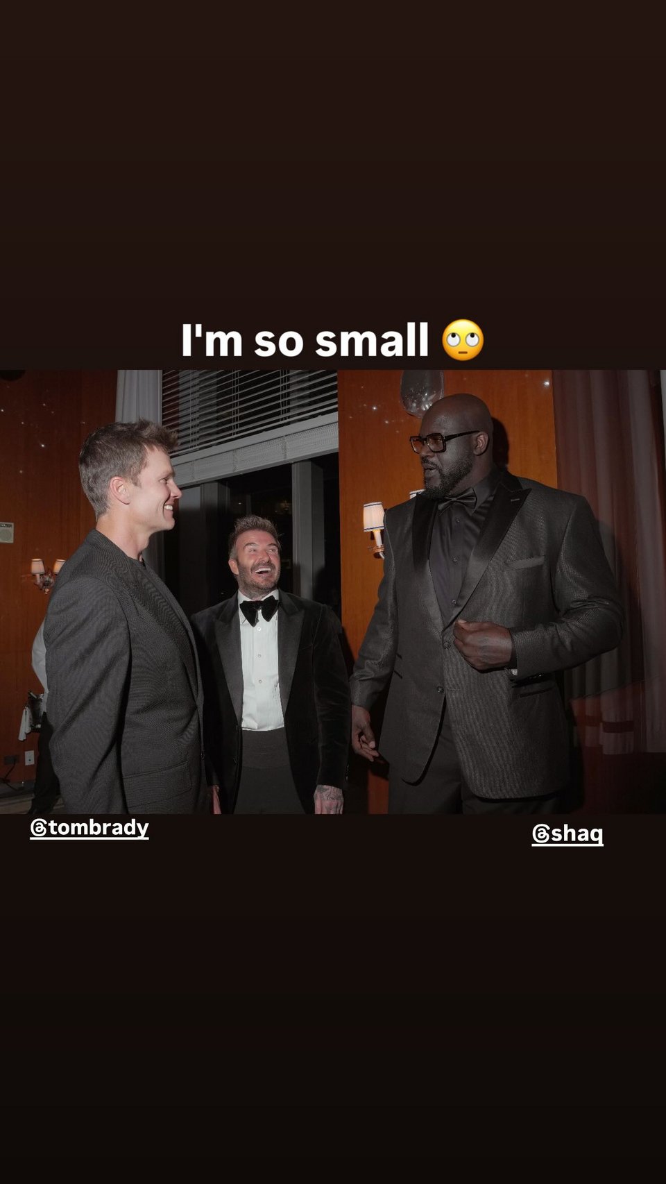 Δεν δίστασε να αυτοσαρκαστεί για το ύψος του, ποζάροντας δίπλα στον αστέρα του αμερικανικού ποδοσφαίρου Τομ Μπρέιντι και στον θρύλο του μπάσκετ Σακίλ Ο’Νιλ, που δεσπόζουν δίπλα του με τα ύψη τους – 1.93 και 2.16 μέτρα.
