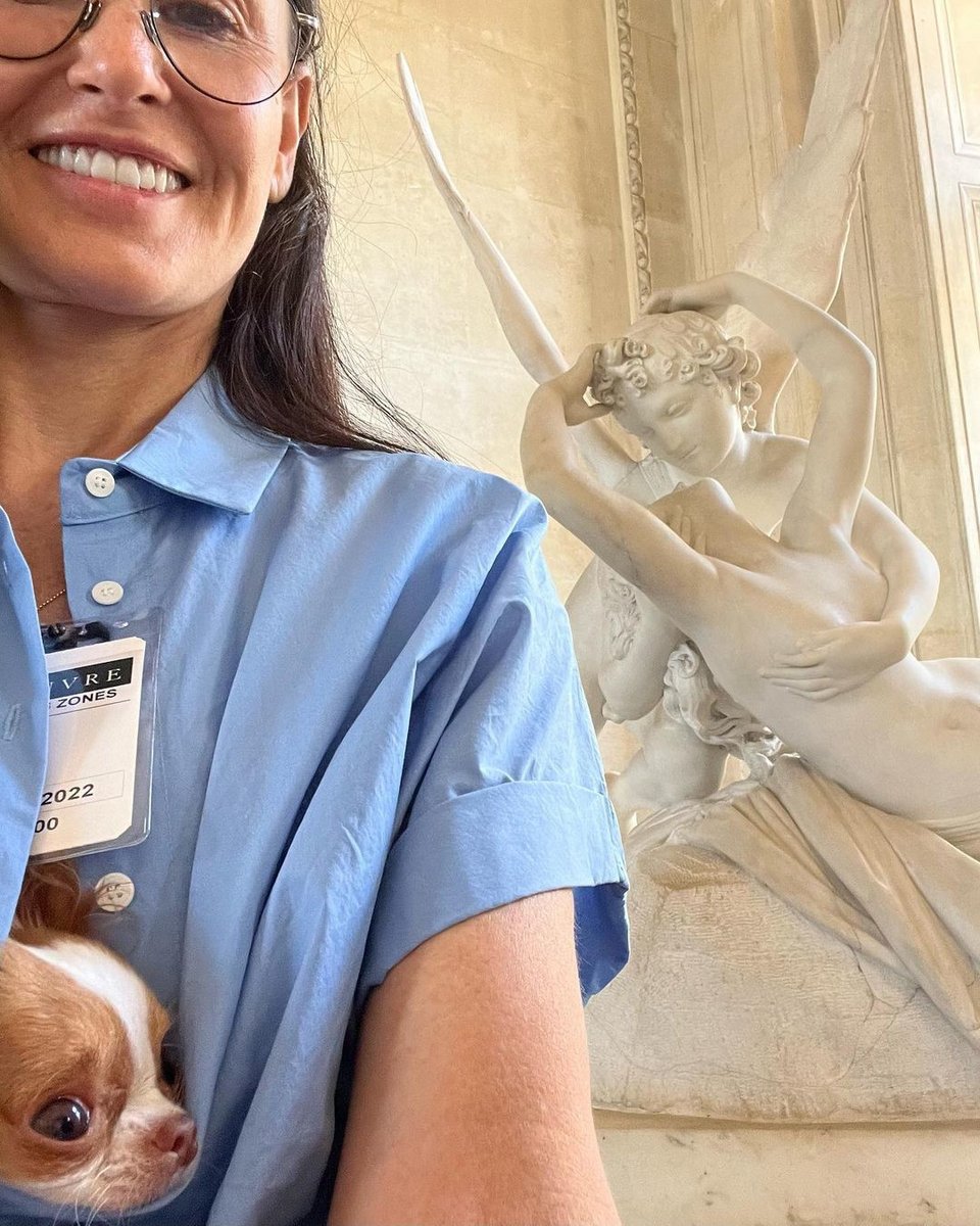 Η 59χρονη ηθοποιός δημοσίευσε φωτογραφίες στο λογαριασμό της στο Instagram, όπου ποζάρει μπροστά από το αριστούργημα της Μόνα Λίζα, με τον σκύλο της αγκαλιά και χωμένο μέσα στην μπλούζα της, προκαλώντας τους θαυμαστές να αναρωτηθούν πώς κατάφερε να περάσει το κατοικίδιό της μέσα στο μουσείο.