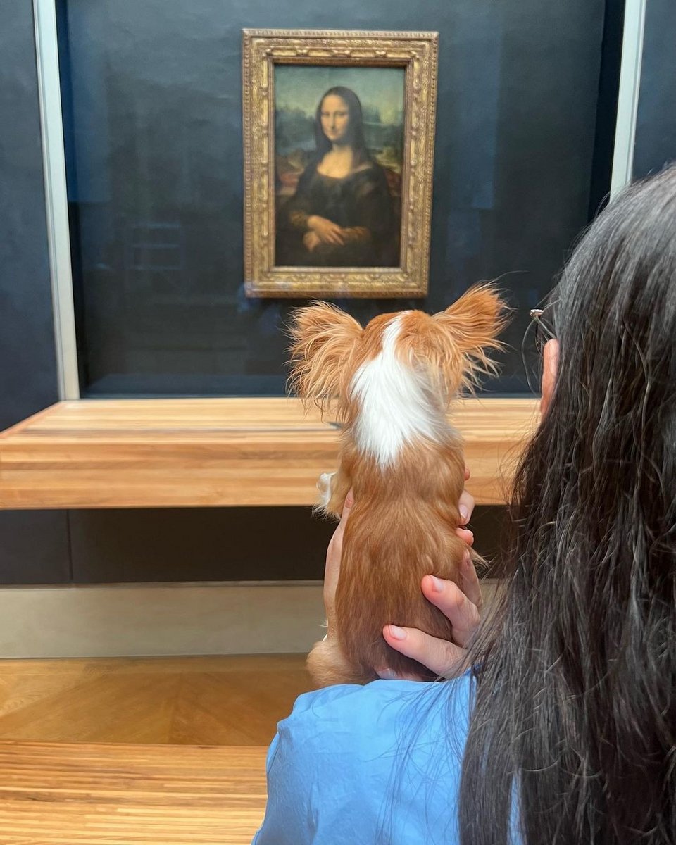 Η Ντέμι Μουρ πήγε με τον σκύλο της στο Λούβρο! Εδώ, μπροστά από τη Μόνα Λίζα, έργο του Λεονάρντο ντα Βίντσι / Φωτογραφία: Instagram/demimoore