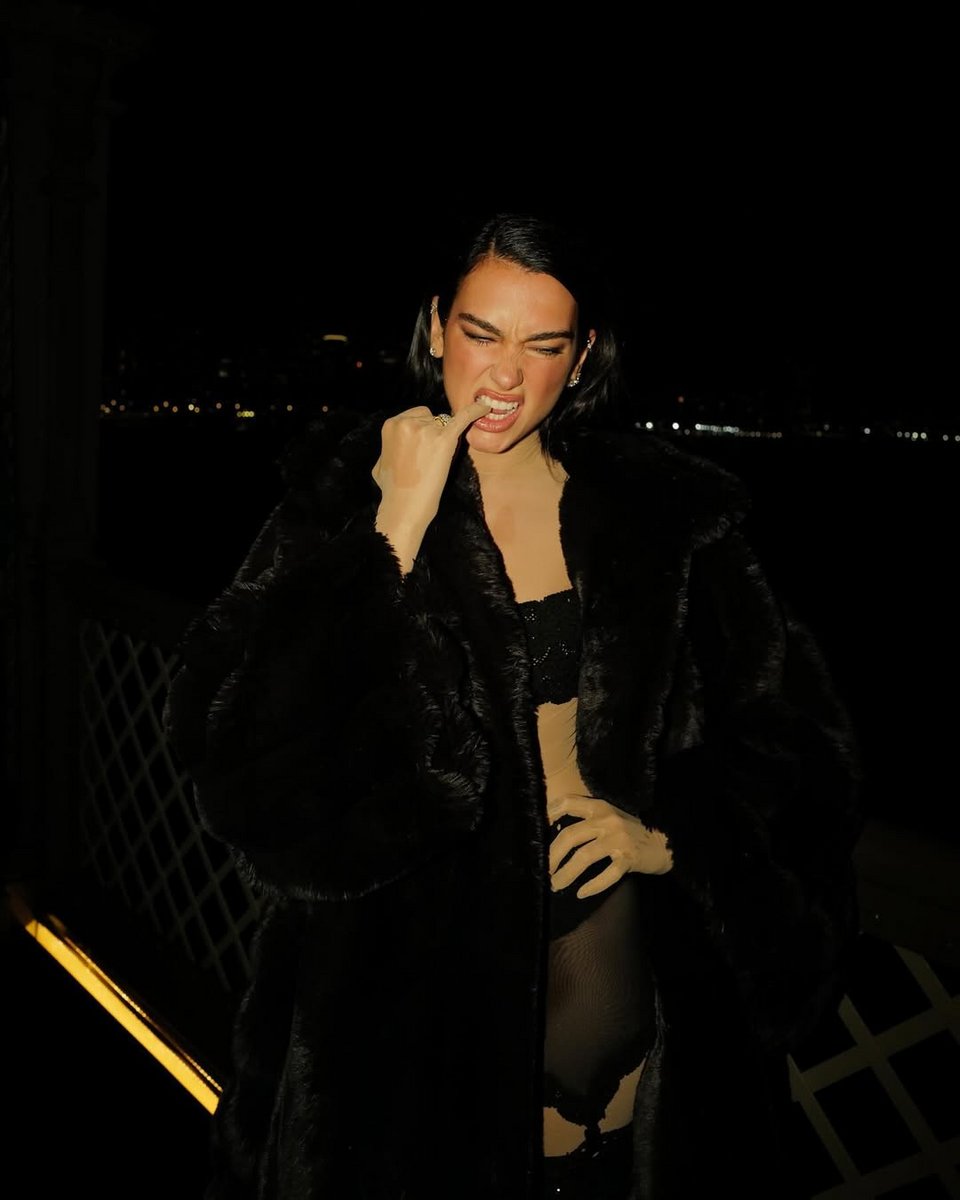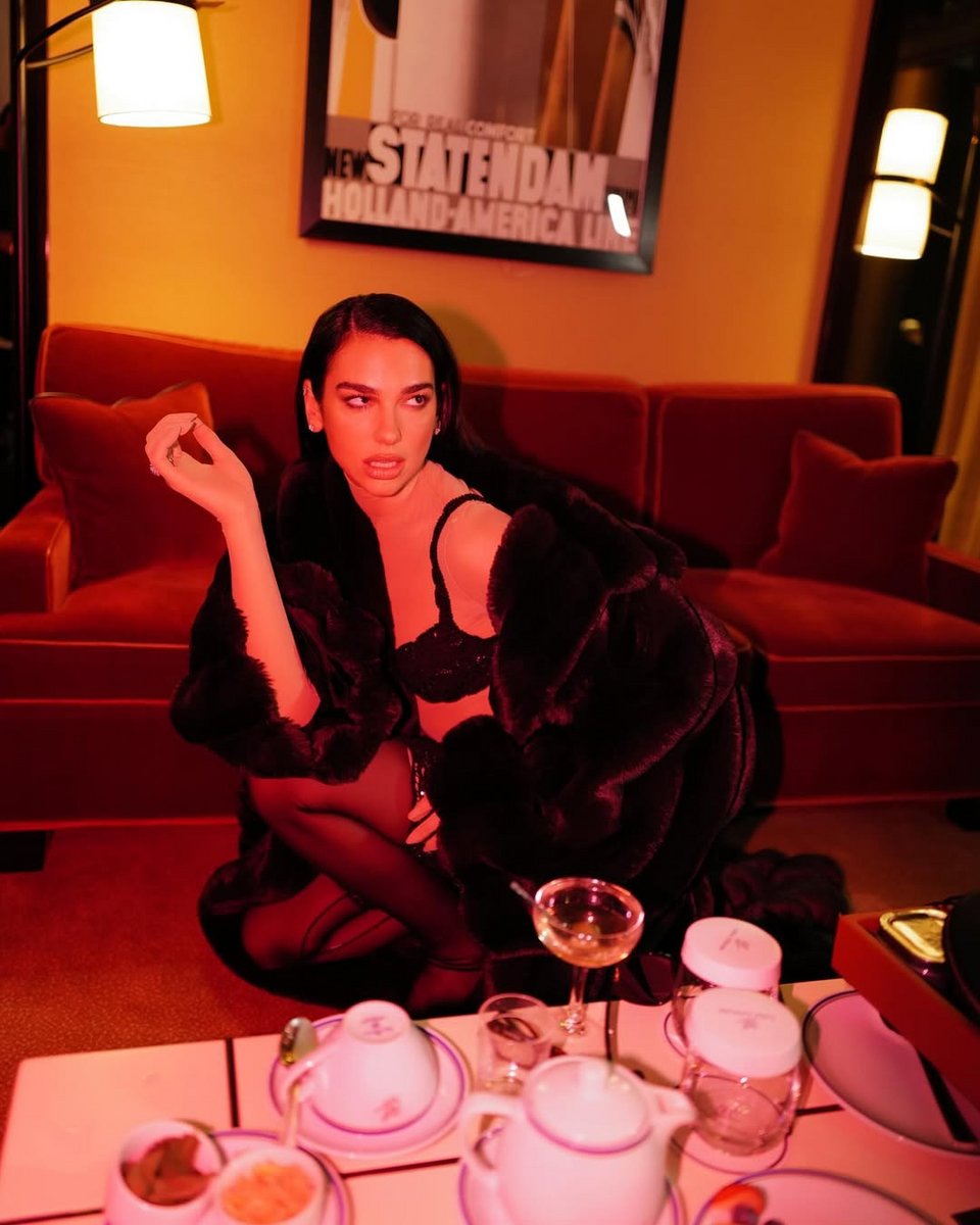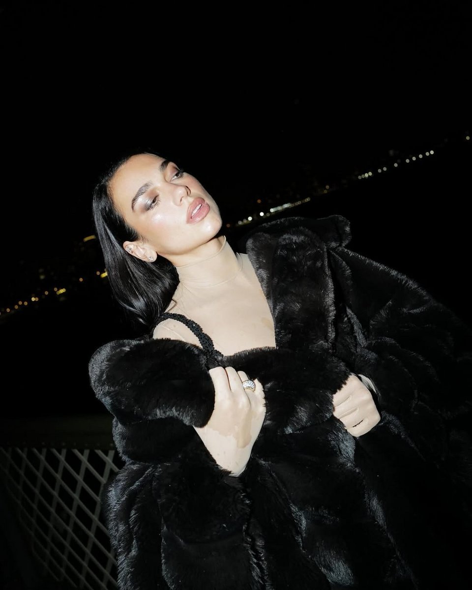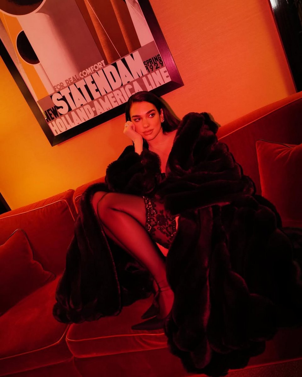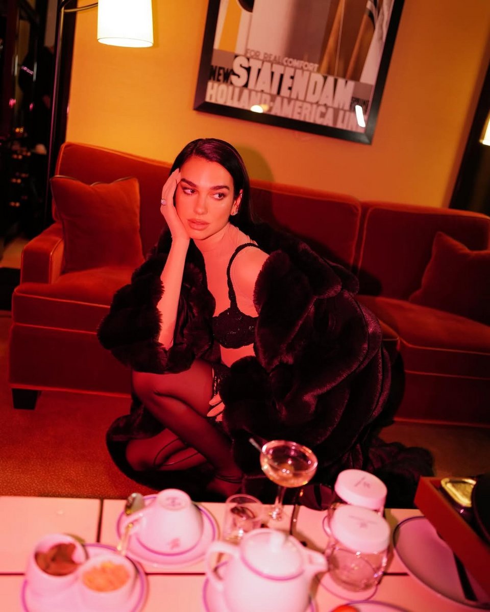 H Ντούα Λίπα ανάρτησε μια σειρά από στιγμιότυπα, στα οποία ποζάρει φορώντας μαύρα εσώρουχα και μία γούνα στο ίδιο χρώμα.