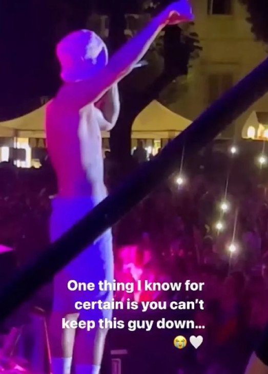 Η σύζυγος του τραγουδιστή Χέιλι Μπίμπερ ήταν για να στηρίξει τον αγαπημένο της στη συναυλία. Ο 28χρονος τραγουδιστής εμφανίστηκε χωρίς πουκάμισο στο φεστιβάλ Lucca Summer στην κεντρική Ιταλία, σηματοδοτώντας έτσι την πρώτη του ζωντανή εμφάνιση από τότε που αναγκάστηκε να αναβάλει μέρος της παγκόσμιας περιοδείας του.