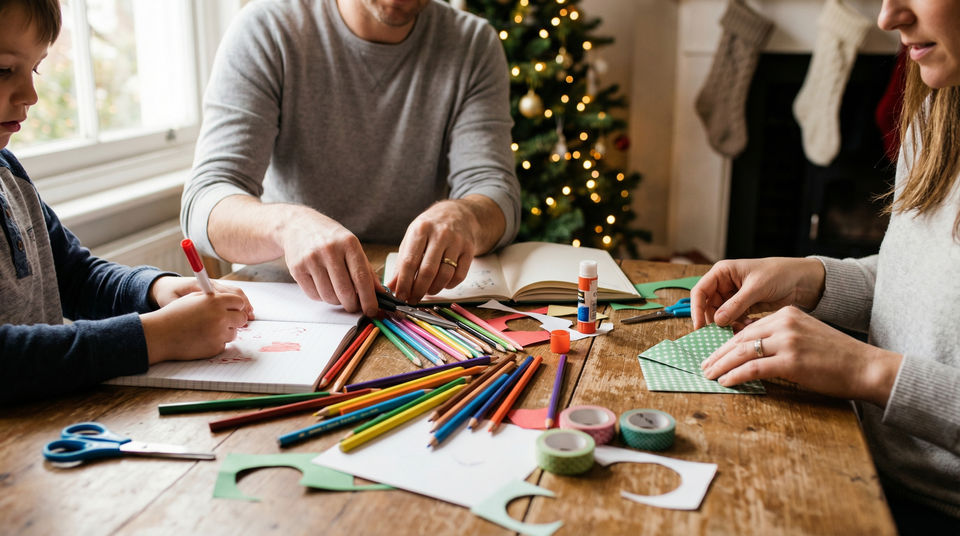• υλικά χειροτεχνίας που φέρνουν γονείς και παιδιά γύρω από το ίδιο τραπέζι