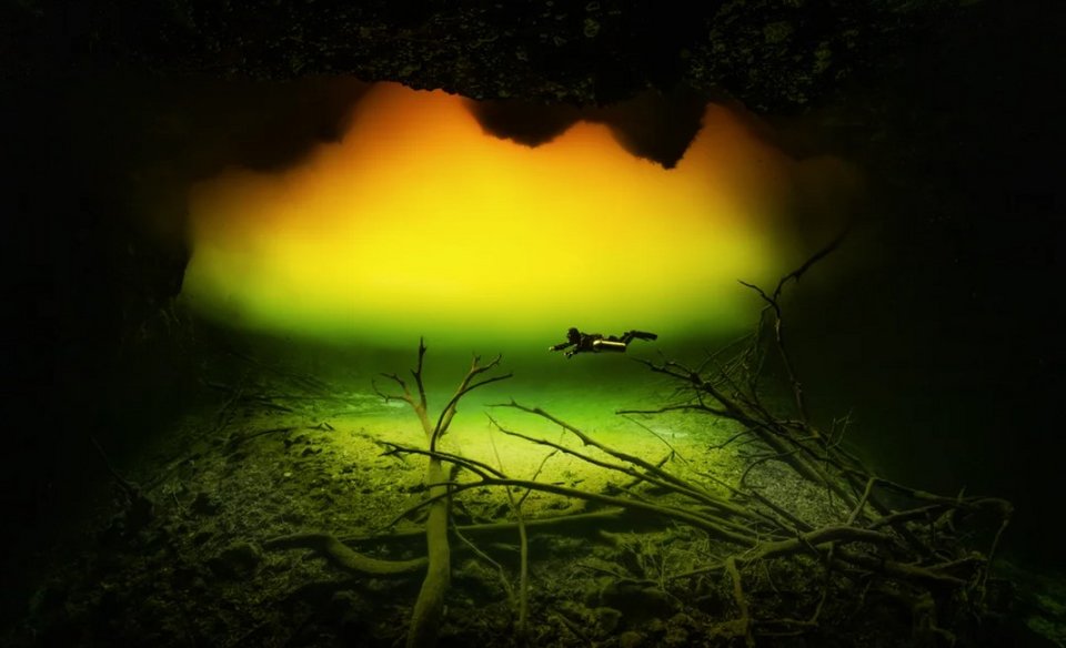 Aurora Underwater, Ruruka, Νότια Κορέα: Ένας δύτης στα πολύχρωμα νερά μιας υποθαλάσσιας καταβόθρας στο Μεξικό. «Ταξίδεψα για πρώτη φορά στο Κανκούν του Μεξικού για μια φωτογράφιση πριν από δύο χρόνια και έκτοτε με έχει συγκλονίσει η γοητεία του. Για να τραβήξω τη συγκεκριμένη φωτογραφία, την επισκέφθηκα κατά τη διάρκεια της βροχερής καλοκαιρινής περιόδου και συνεργάστηκα με έναν ντόπιο Κορεάτη δύτη ως μοντέλο μου», λέει o Νοτιοκορεάτης φωτογράφος.