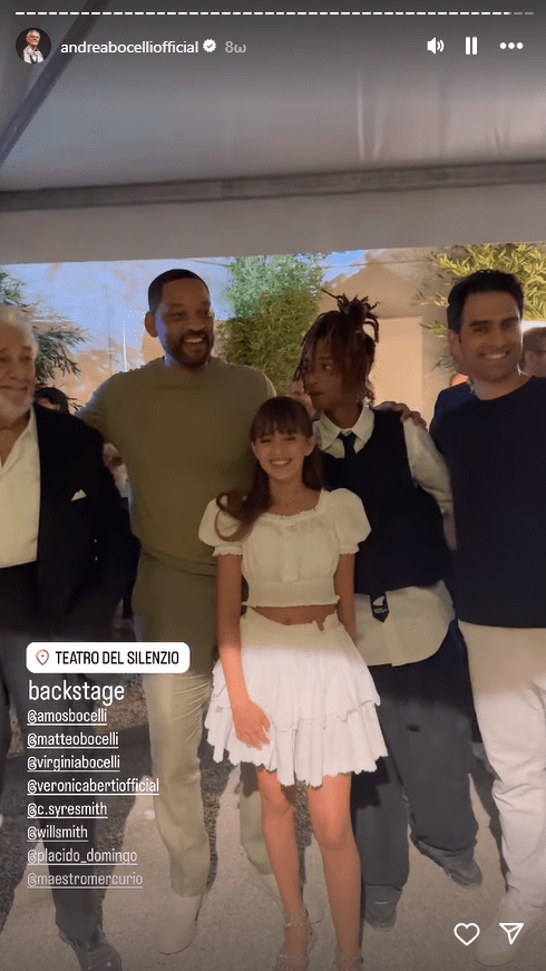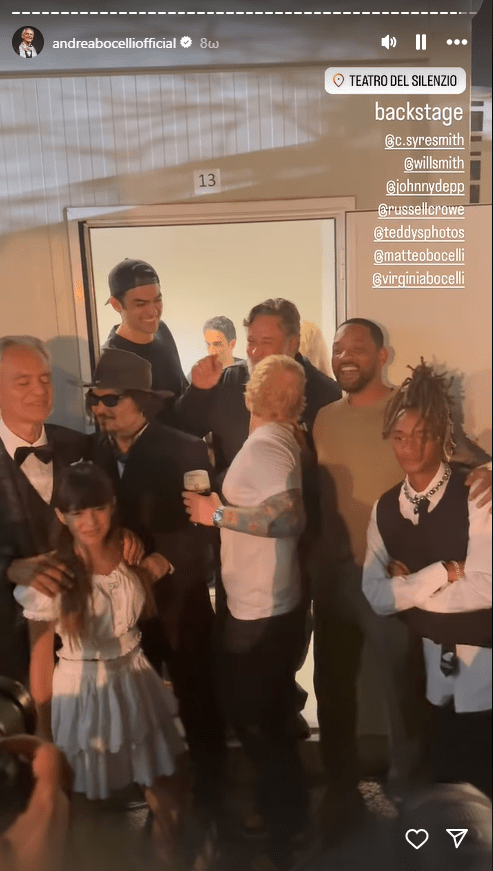 Εκεί βρέθηκαν ο Γουίλ Σμιθ με τον γιο του, Τζάντεν, ο Τζόνι Ντεπ, ο Ράσελ Κρόου, ο Εντ Σίραν κ.α. Εκεί ήταν και τα τρία παιδιά του Μποτσέλι, Ματέο, Άμος και Βιρτζίνια και πόζαραν όλοι μαζί για μερικές φωτογραφίες μετά την συναυλία.