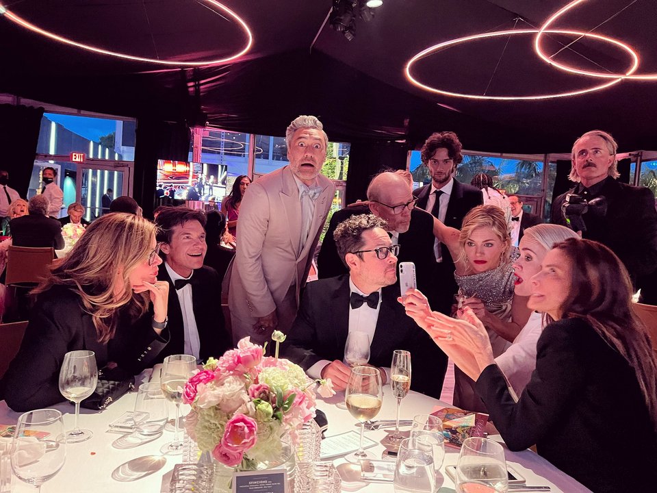 Στην περίφημη φωτογραφία διακρίνει κανείς τον σκηνοθέτη Thor Waititi με το στόμα του ορθάνοιχτο, τον Bateman με βλέμμα εμβρόντητο και την Paulson να ψάχνει μανιωδώς στο Google, καθώς έδειχνε το σκηνικό από το κινητό της στη Miller.
