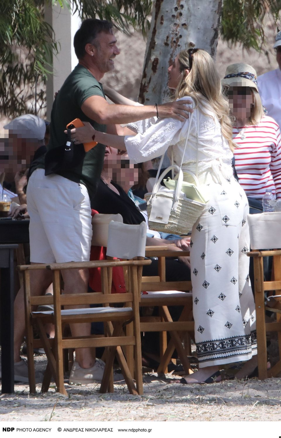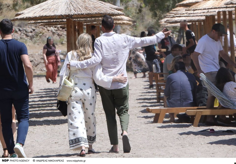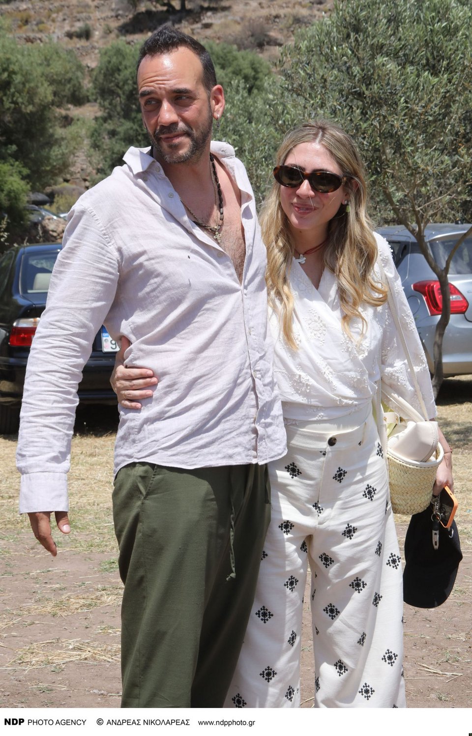 Το ζευγάρι που γνωρίστηκε πριν από περίπου ένα χρόνο και περιμένει το πρώτο του παιδί, ξεχείλιζε από ευτυχία τόσο χθες όσο και σήμερα στο after wedding party που είχαν οργανώσει σε παραλία του νησιού για τους καλεσμένους τους.