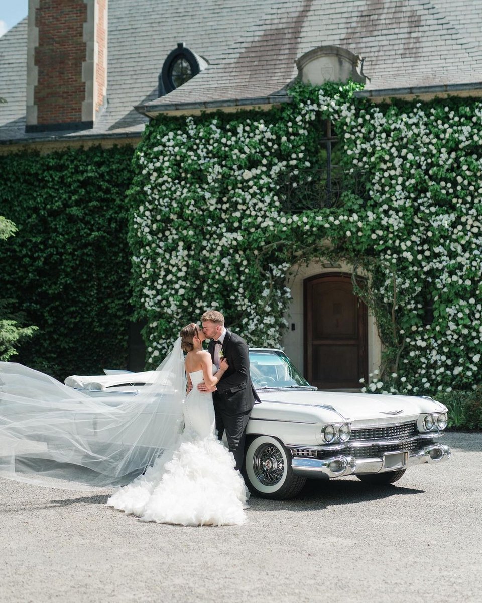 Οι φωτογραφίες δείχνουν τη Hailie ντυμένη με ένα υπέροχο λευκό νυφικό με ρομαντική τούλινη φούστα και διάφανο πέπλο που ολοκληρώνει το κομψό της χτένισμα.