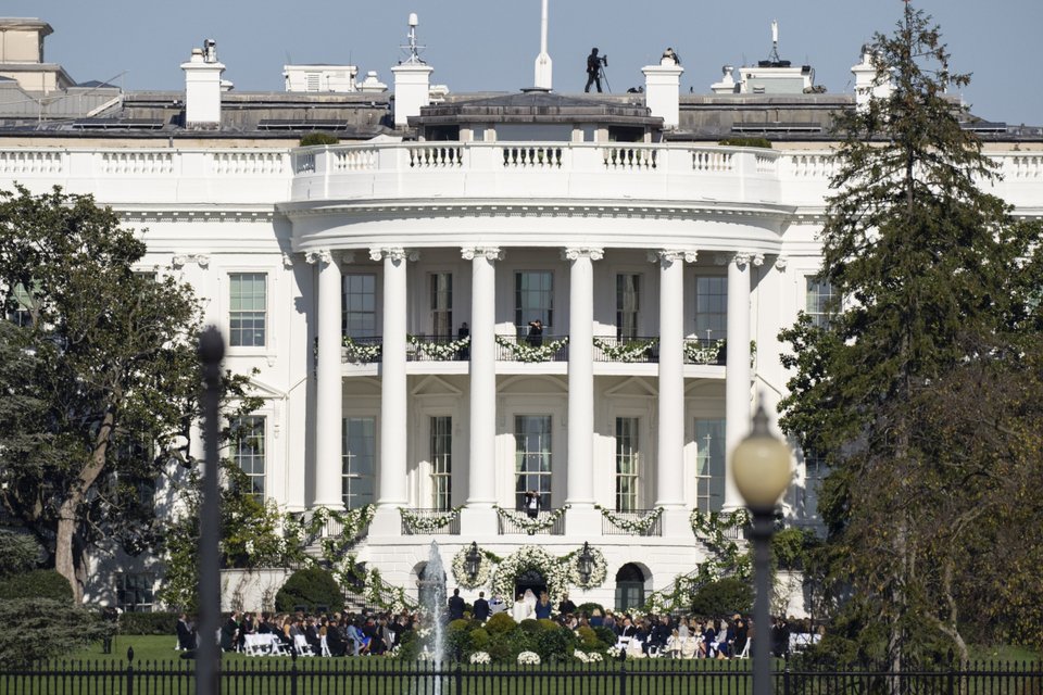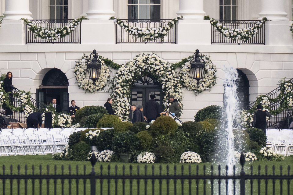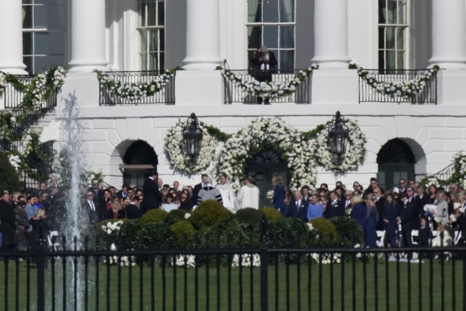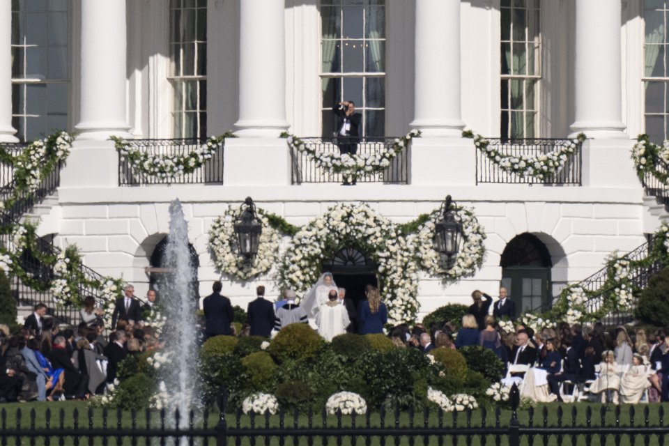 Ωστόσο, ο φωτογραφικός φακός κατάφερε να απαθανατίσει κάποια στιγμιότυπα από την γαμήλια τελετή που πραγματοποιήθηκε στο χώρο του «South Lawn» του Λευκού Οίκου.