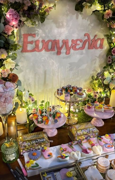 Η αποκάλυψη έγινε μέσα από τα social media, καθώς η Δήμητρα Λαζαράτου και η ηθοποιός Δέσποινα Τσούτσα μοιράστηκαν φωτογραφίες από το candy bar, το οποίο έγραφε με μεγάλα γράμματα το όνομα της νεοφώτιστης, το οποίο είναι Ευαγγελία.