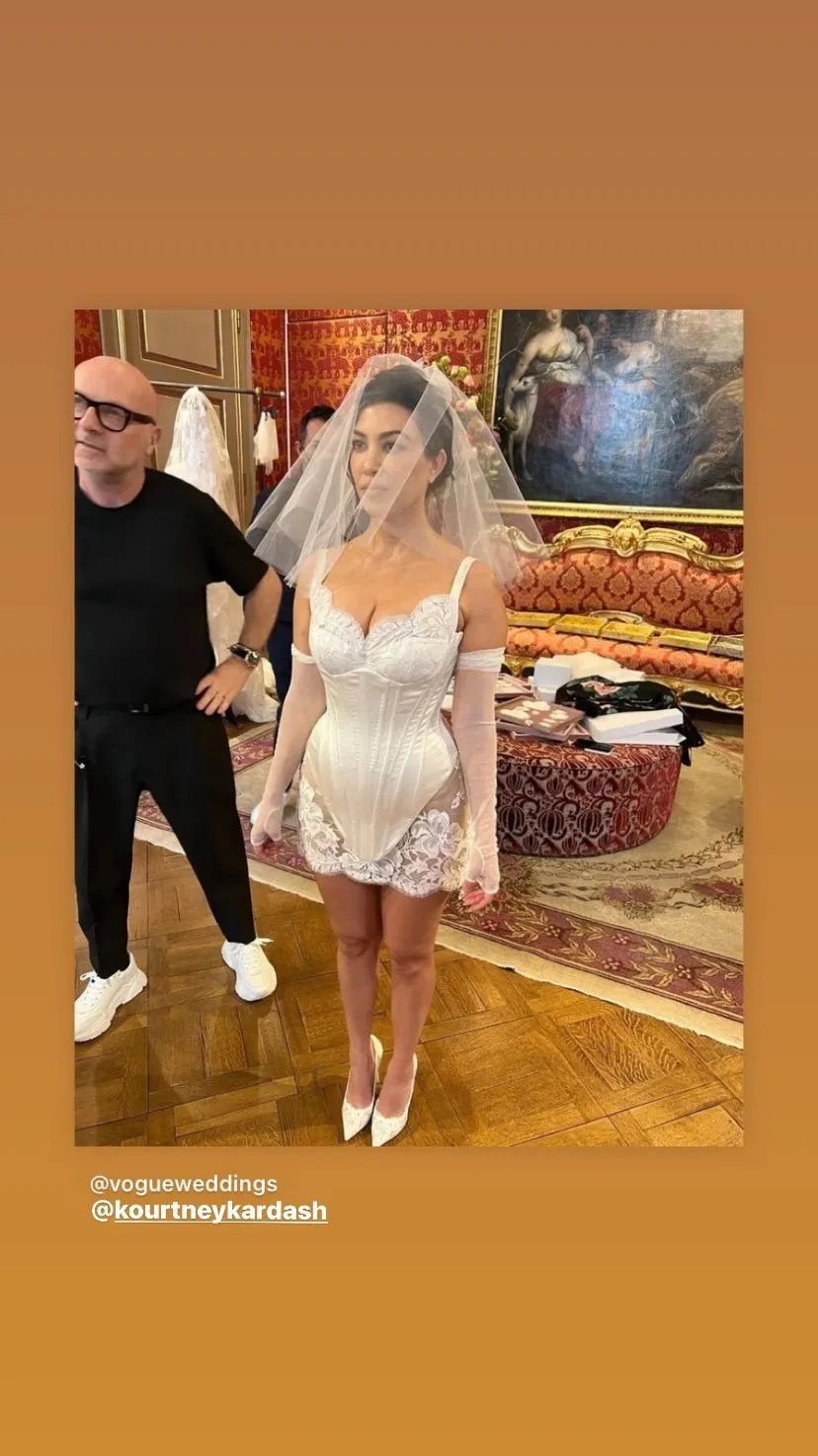 Το νυφικό της Κόρτνεϊ Καρντάσιαν, όπως και όλων των φορεμάτων των Καρντάσιαν και Τζένερ όλες τις τελευταίες ημέρες που... εξέδραμαν στο Πόρτο Φίνο είχαν την υπογραφή των Dolce&Gabbana.