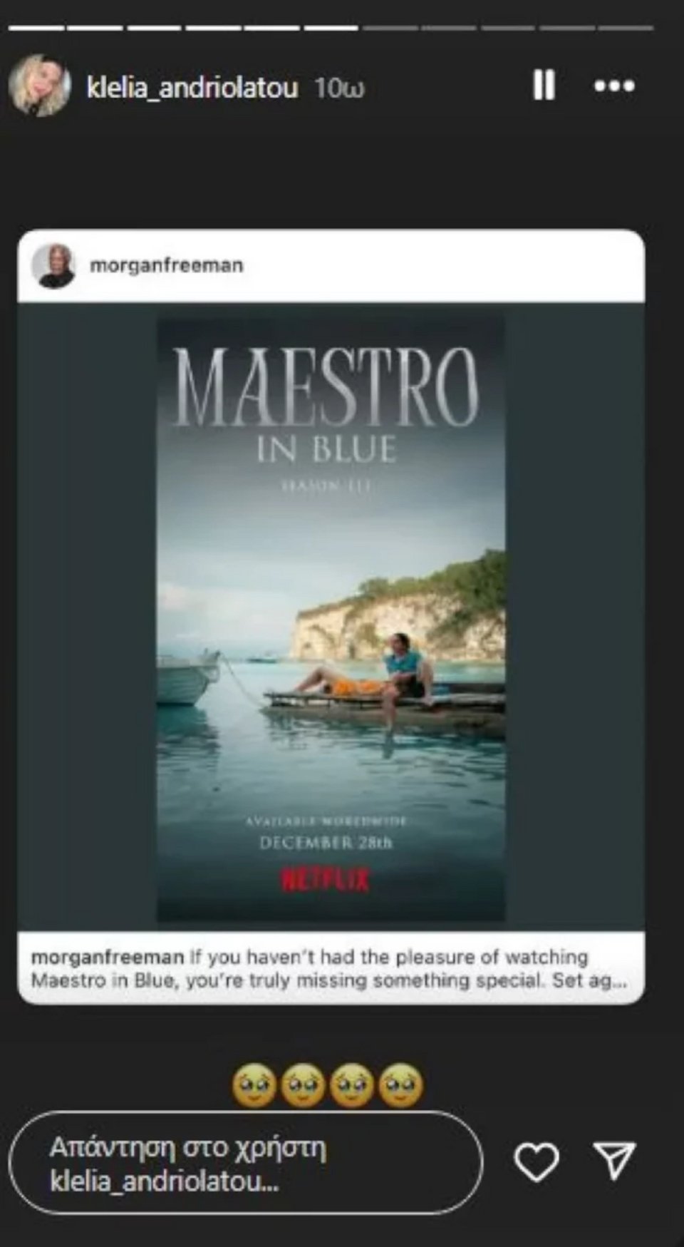 Η πρωταγωνίστρια της σειράς Κλέλια Ανδριολάτου αναδημοσίευσε το μήνυμα του Μόργκαν Φρίμαν στον προσωπικό της λογαριασμό στο Instagram, ενώ κάτω από την ανάρτηση πρόσθεσε δύο emoji που εκφράζουν τη συγκίνησή της.