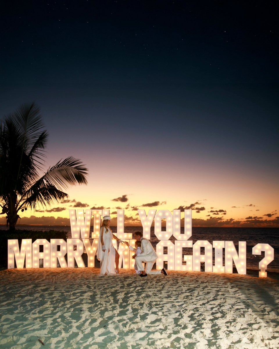 Η 45χρονη σταρ αποκάλυψε μέσω των social media ότι παντρεύτηκε ξανά τον σύζυγό της, στα νησιά Turks & Caicos την Ημέρα του Αγίου Βαλεντίνου. Όπως είπε, ο Ρέουμ είχε γονατίσει και της είχε κάνει ξανά πρόταση γάμου.