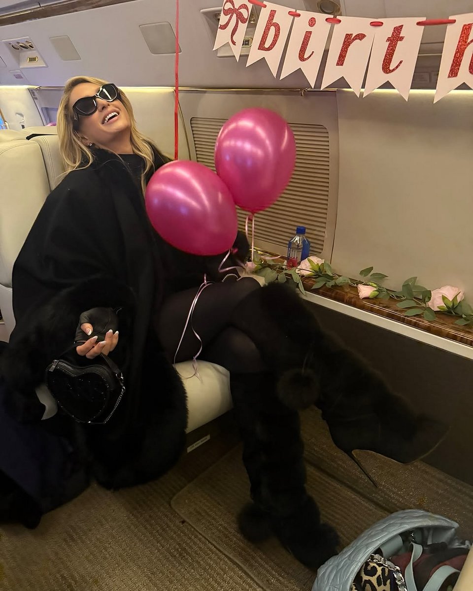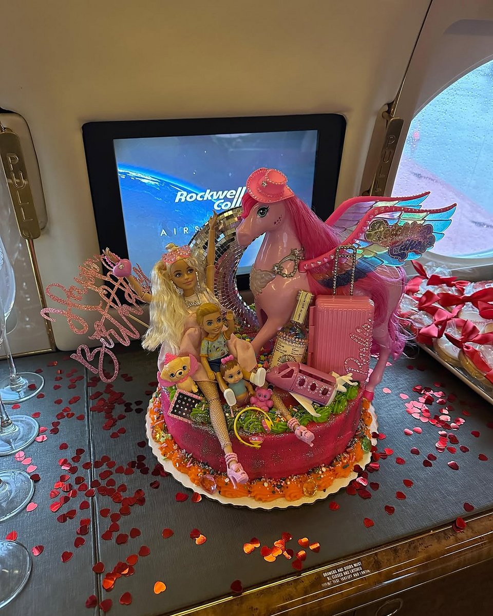 Στον προσωπικό της λογαριασμό στο Instagram, δημοσίευσε φωτογραφίες και βίντεο από το πάρτι που οργάνωσε μέσα στο τζετ της, ενώ σε πολλά από τα στιγμιότυπα φαίνεται να ποζάρει δίπλα στα δύο της παιδιά, Φοίνιξ και Λόντον.