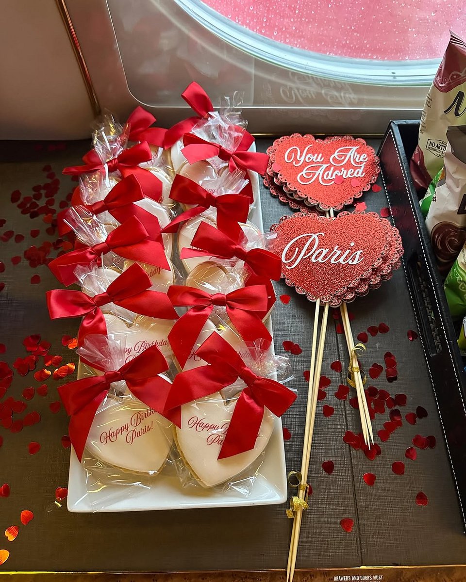 Για την ημέρα των γενεθλίων της, υπήρχαν μπισκότα σε σχήμα καρδιάς που έλεγαν «χαρούμενα γενέθλια Πάρις», στολίδια που έγραφαν «σε λατρεύουμε», ενώ το τζετ ήταν γεμάτο ροζ μπαλόνια. Η τούρτα γενεθλίων ήταν στολισμένη με κούκλες Barbie και έναν μονόκερο.