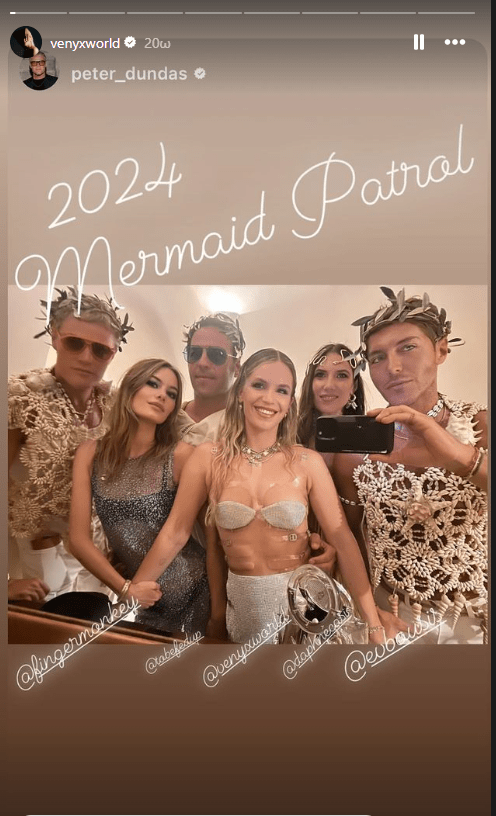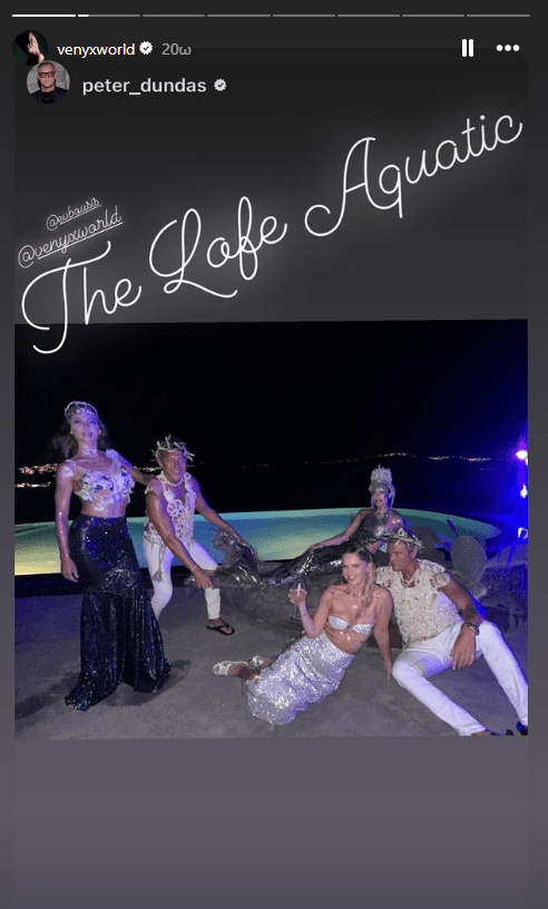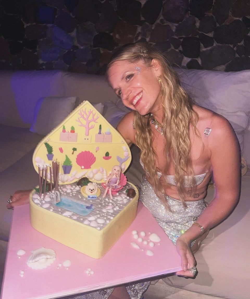 Μάλιστα, το θέμα που επέλεξε φέτος για το πάρτι της ήταν η χαμένη Ατλαντίδα. Έτσι ντύθηκε γοργόνα επιλέγοντας μια ασημένια αστραφτερή φούστα με σκίσιμο, αποκαλυπτικό μπουστάκι και πολλά κοσμήματα με κοχύλια του δικού της brand.