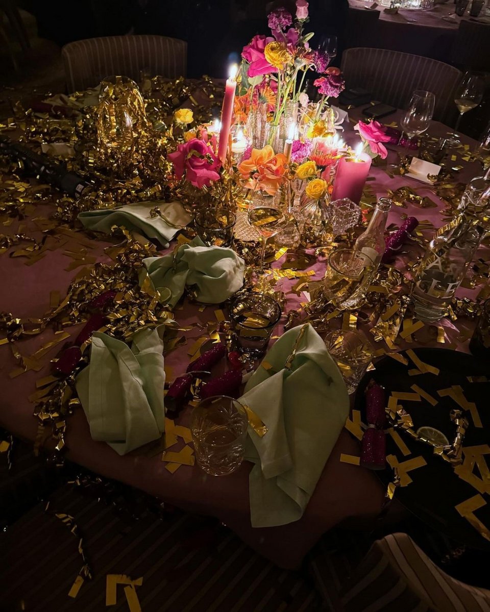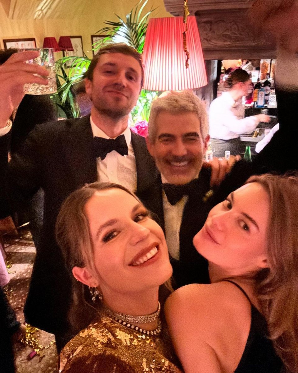 Οι τρεις γυναίκες πόζαραν μαζί με τον Τεό και τον Σταύρο Νιάρχο, οι οποίοι φορούσαν σμόκιν και παπιγιόν, αλλά και άλλους φίλους τους, και γιόρτασαν μαζί την Πρωτοχρονιά με ένα ξέφρενο πάρτι με dj.