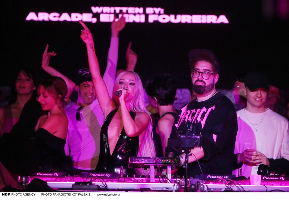 Η τραγουδίστρια, φορώντας μία βινίλ ολόσωμη φόρμα, παρουσίασε τα 13 νέα της τραγούδια στο κλαμπ Lohan, όπου θα εμφανίζεται τον χειμώνα. Ανάμεσα στα τραγούδια είναι το Alleluia και το «Δεν κάνω εγώ για σπίτι» που έχουν γίνει ήδη viral στο TikTok!