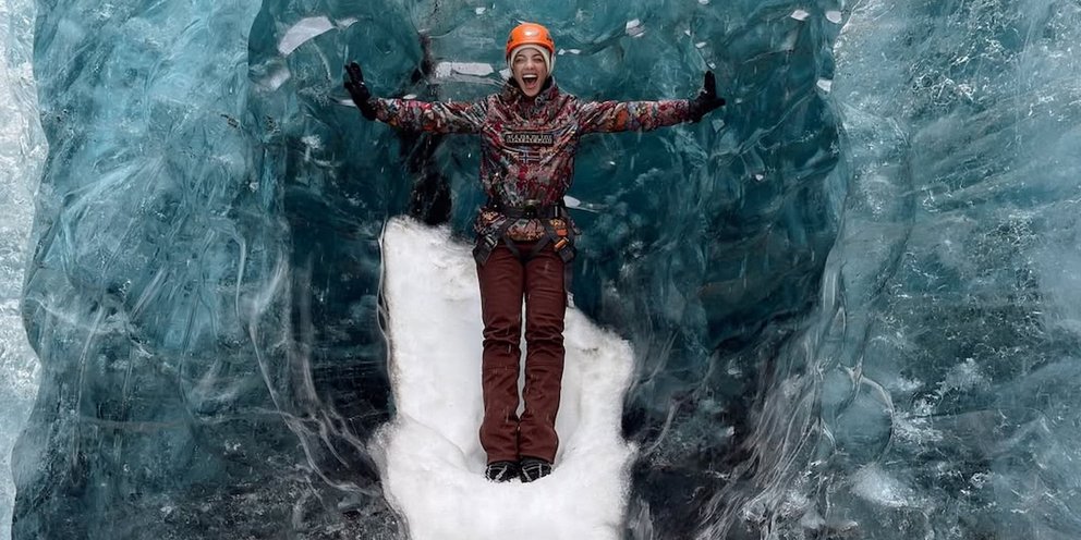 Fun fact: Το έντονο μπλε στις ice caves δημιουργείται επειδή ο πάγος είναι τόσο πυκνός που απορροφά όλα τα άλλα μήκη κύματος του φωτός εκτός από το μπλε», ανέφερε στην τρίτη της ανάρτηση.
