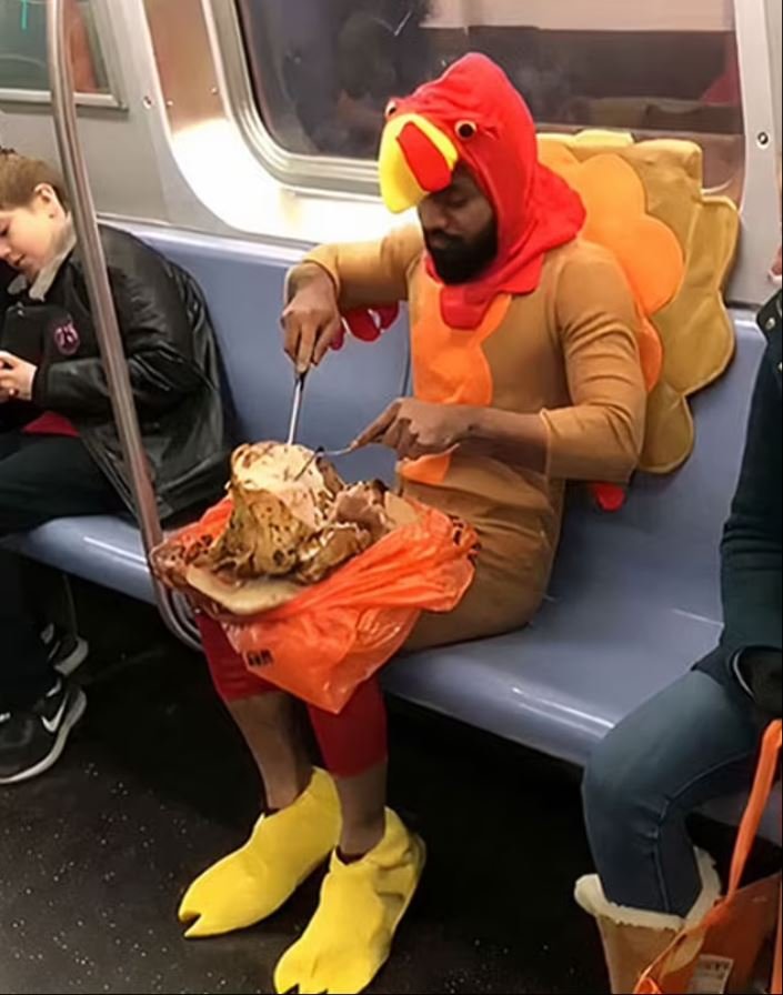 Ξέρετε τι λένε, όταν πεινάς, πεινάς. Και αυτός ο Νεοϋορκέζος σίγουρα ανυπομονούσε να φάει το πιάτο του με κρέας - παρά το γεγονός ότι ήταν με κοστούμι γαλοπούλας.