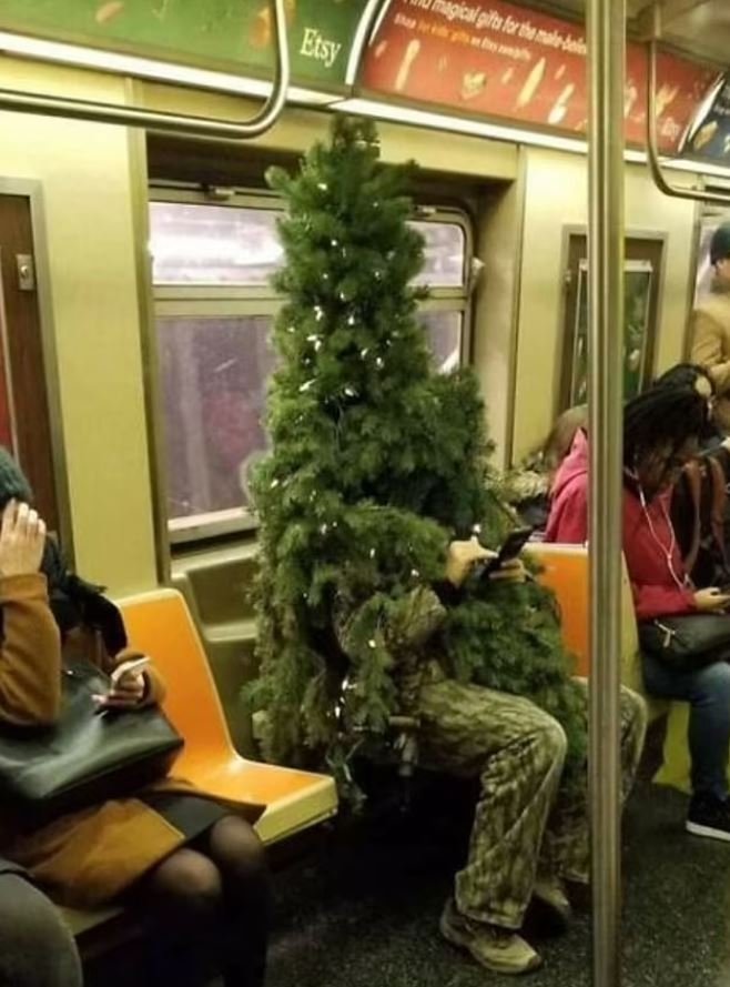 Μια φωτογραφία δείχνει μια γυναίκα που μοιάζει ακριβώς με τη Μόνα Λίζα, ενώ ένας άλλος επιβάτης εντοπίστηκε ντυμένος σαν χριστουγεννιάτικο δέντρο. Αλλού, ένας σκύλος περνάει φανταστικά με το δικό του κουνιστό άλογο και μια γυναίκα εθεάθη με έναν ανανά σε λουρί.