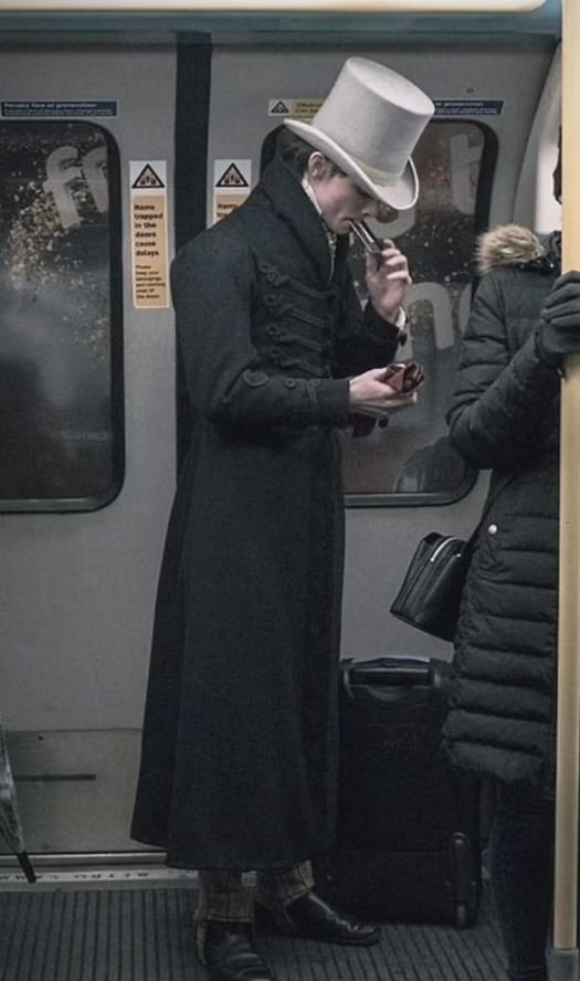 Μήπως έχετε χαθεί κύριε; Ένας βικτωριανός κύριος μετακινείται με το μετρό του Λονδίνου σε αυτό το στιγμιότυπο.