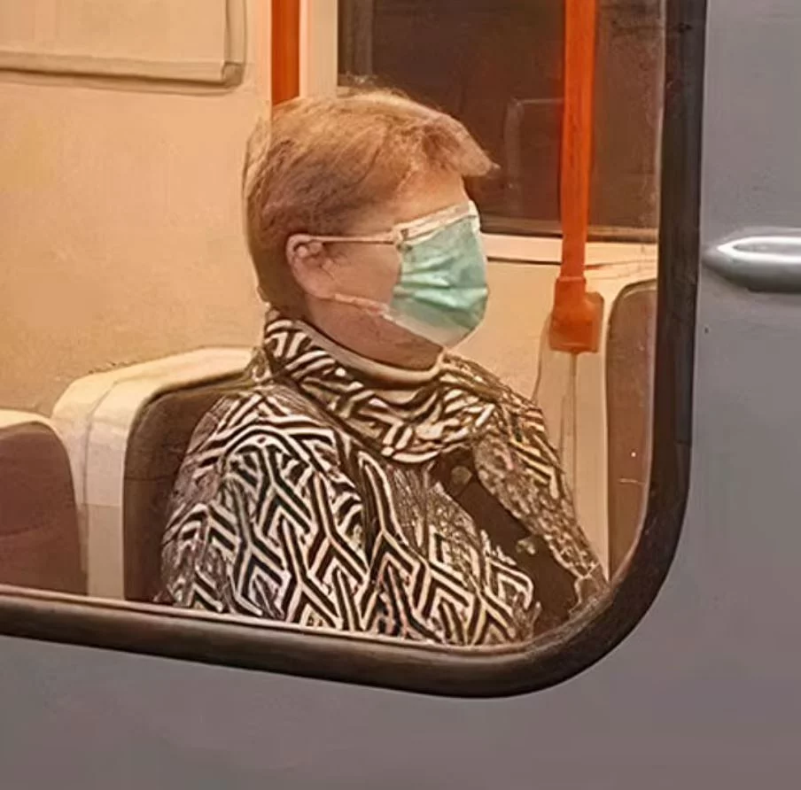 Αυτή η κυρία μάλλον κάτι δεν κατάλαβε καλά για τη σωστή χρήση μάσκας, ή απλά θέλει να... αποφύγει κάποιον.