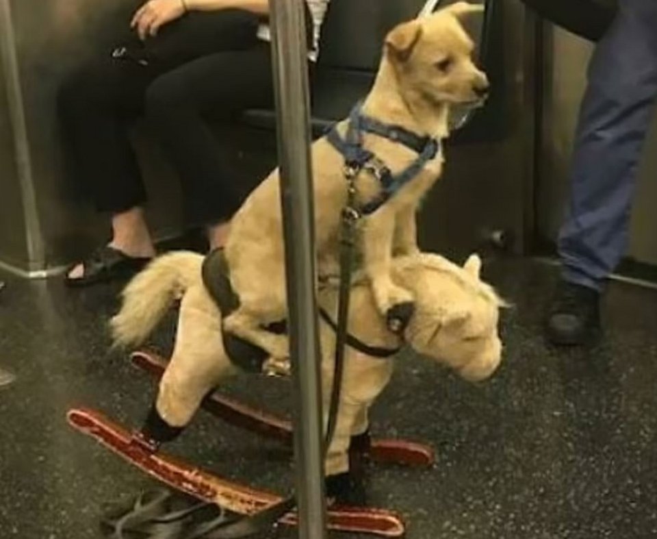 Ένα σκυλάκι πάνω σε ένα ψεύτικο αλογάκι, στο μετρό της Νέας Υόρκης!